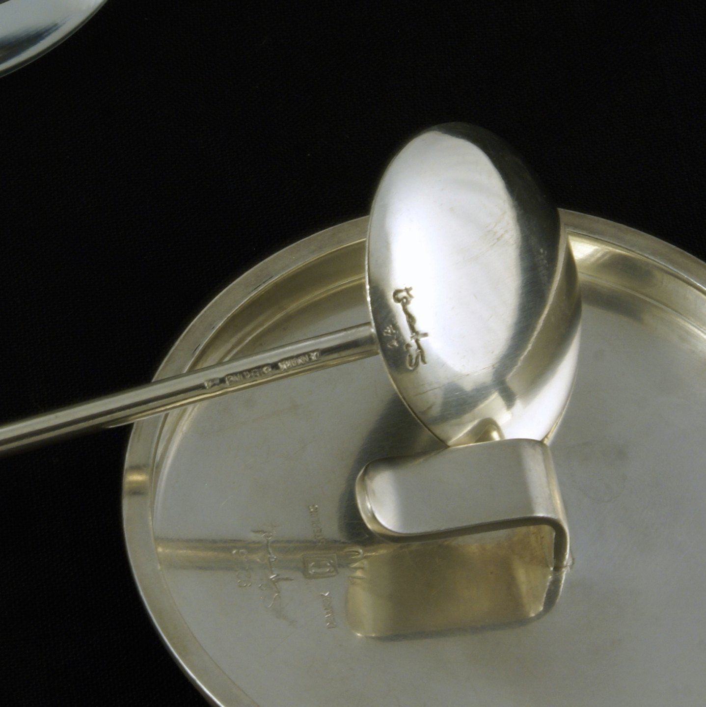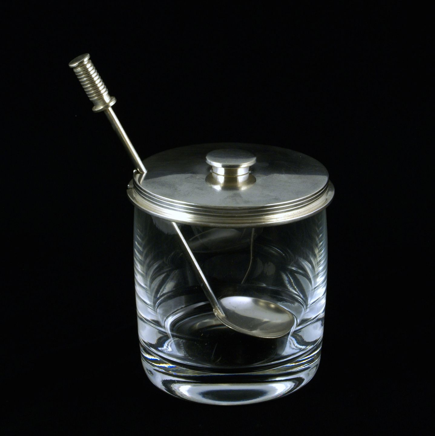 Georg Jensen. Marmeladekrukke med låg og ske i sterling sølv - Sigvard Bernadotte #710