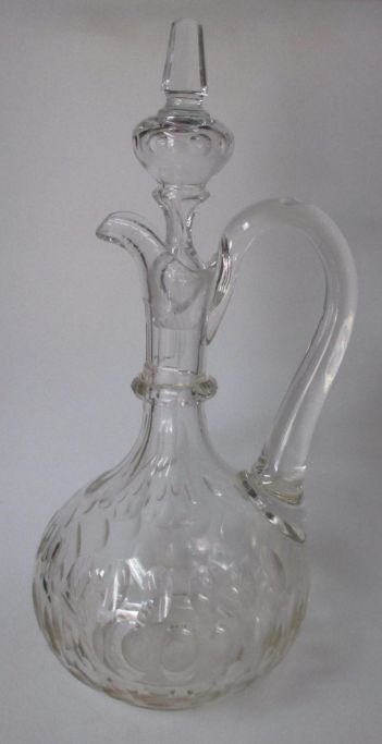 Glas karaffel med slibninger. Prop og hank. Danmark. 20. årh. Højde.: 33 cm.