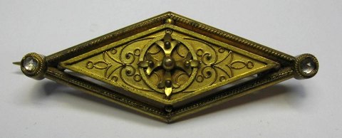 Brooch of gold plated silver, c. 1900, decorated with flowers and clear stones. L .: 5,5 cm. With needle.