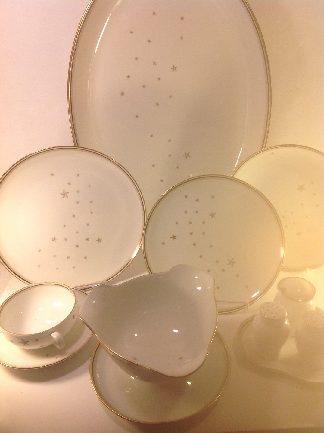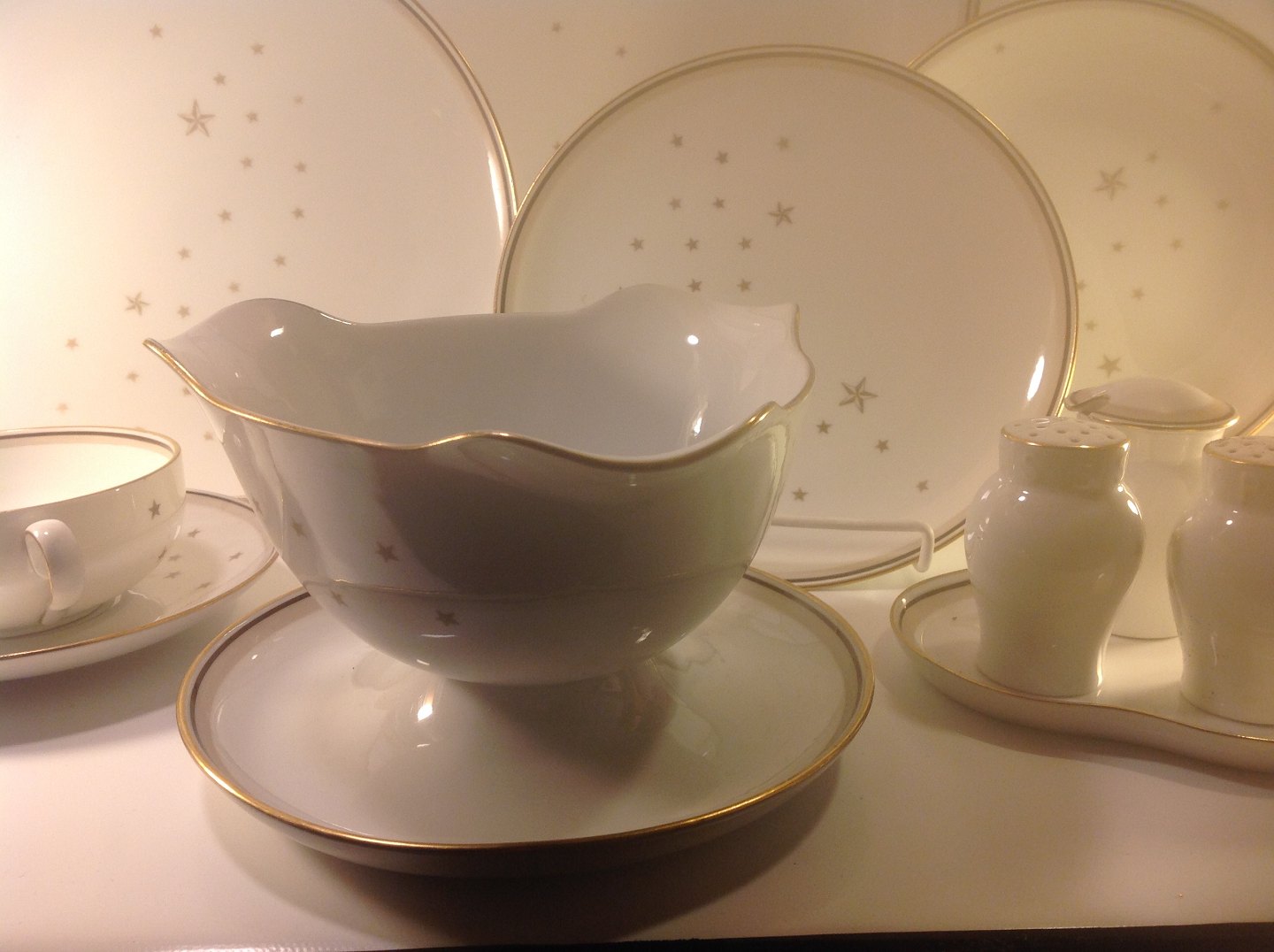 Mælkevejen Bing & Grøndahl I flot og hel stand Bing & Groendahl med stjerner Hvidt porcelæn, stjerner, brun kant og guldkant, form 643