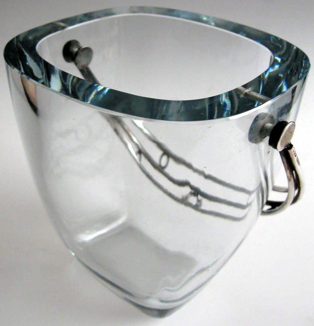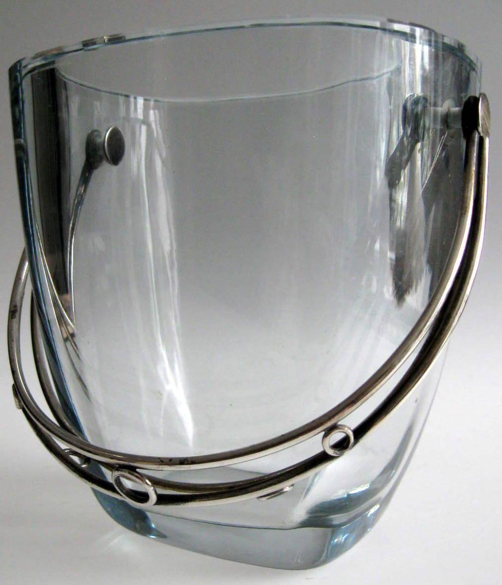 Isspand i søblåt glas, o. 1950, Strømberg Glashytte, Sverige, med hank i sterling sølv. Højde med hank.: 24 cm.