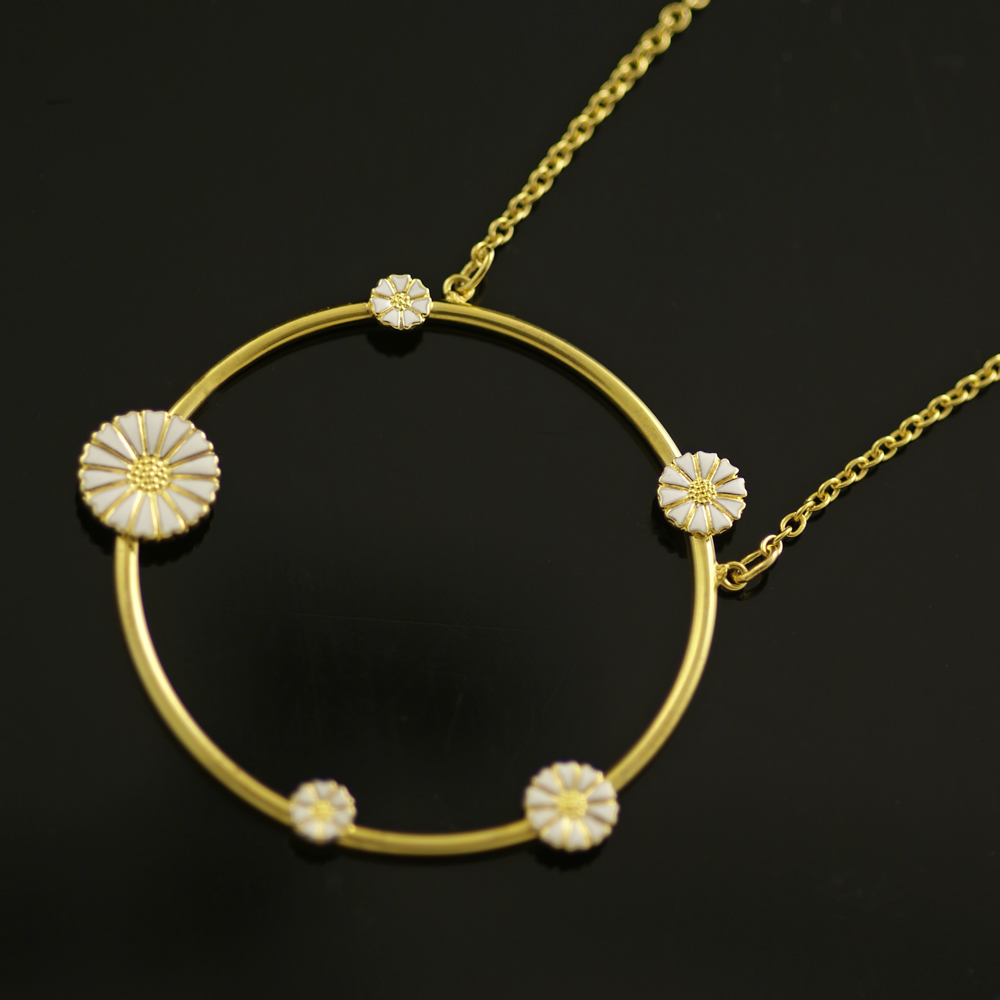 Bernhard Hertz Marguerit / Daisy Halskæde i forgyldt Sterling Sølv med hvid emalje.
