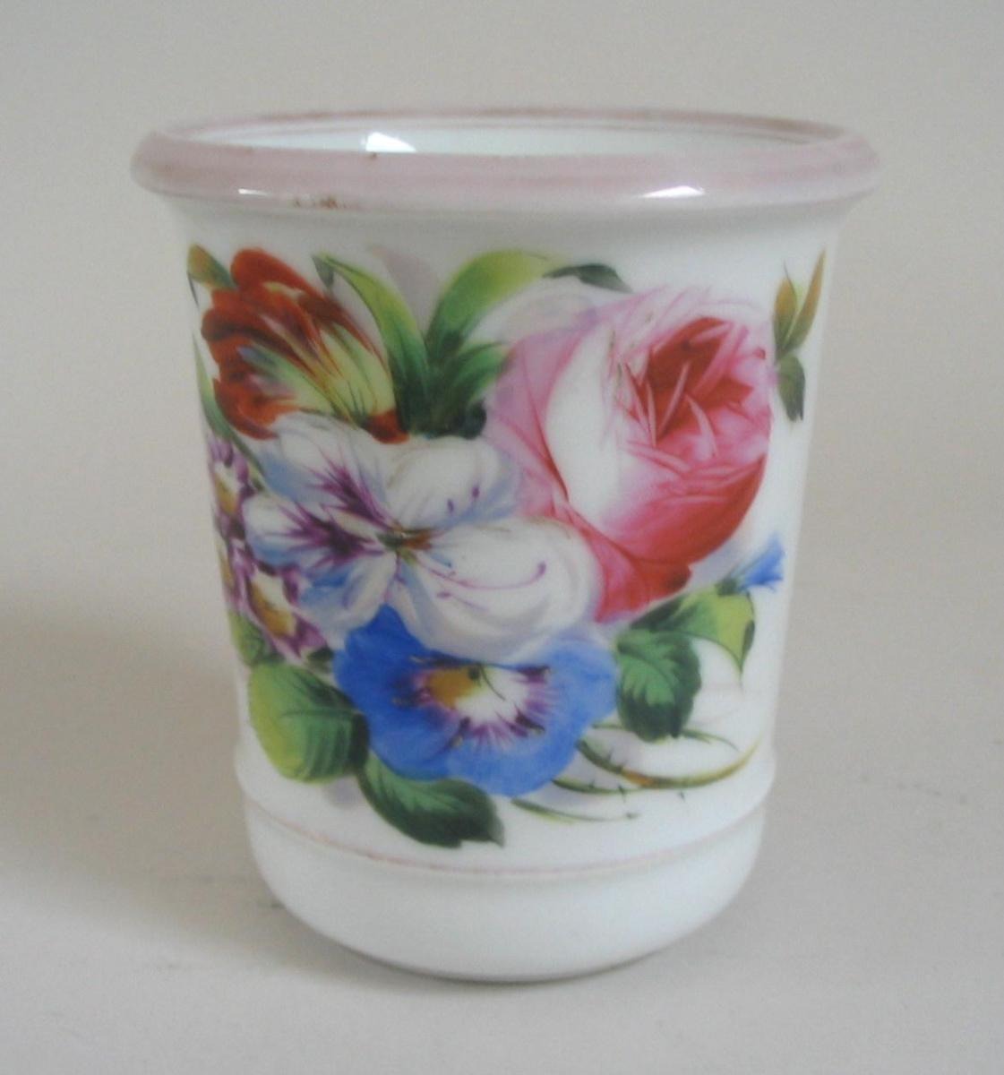 Chokolade krus, Bing & Grøndahl, København, 19. årh. håndbemalet, dekoreret med blomster. Guld er slidt. H.: 9,5 cm. Dia.: 8,3 cm. Stemplet. Perfekt stand!