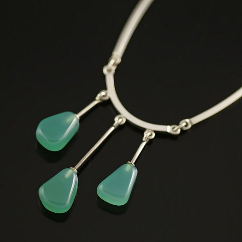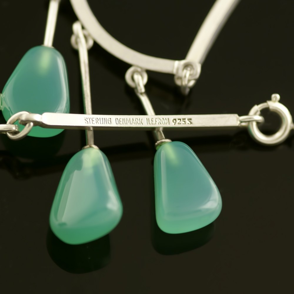 N.E. From Halskæde i Sterling sølv med Grøn agat. 1960erne
