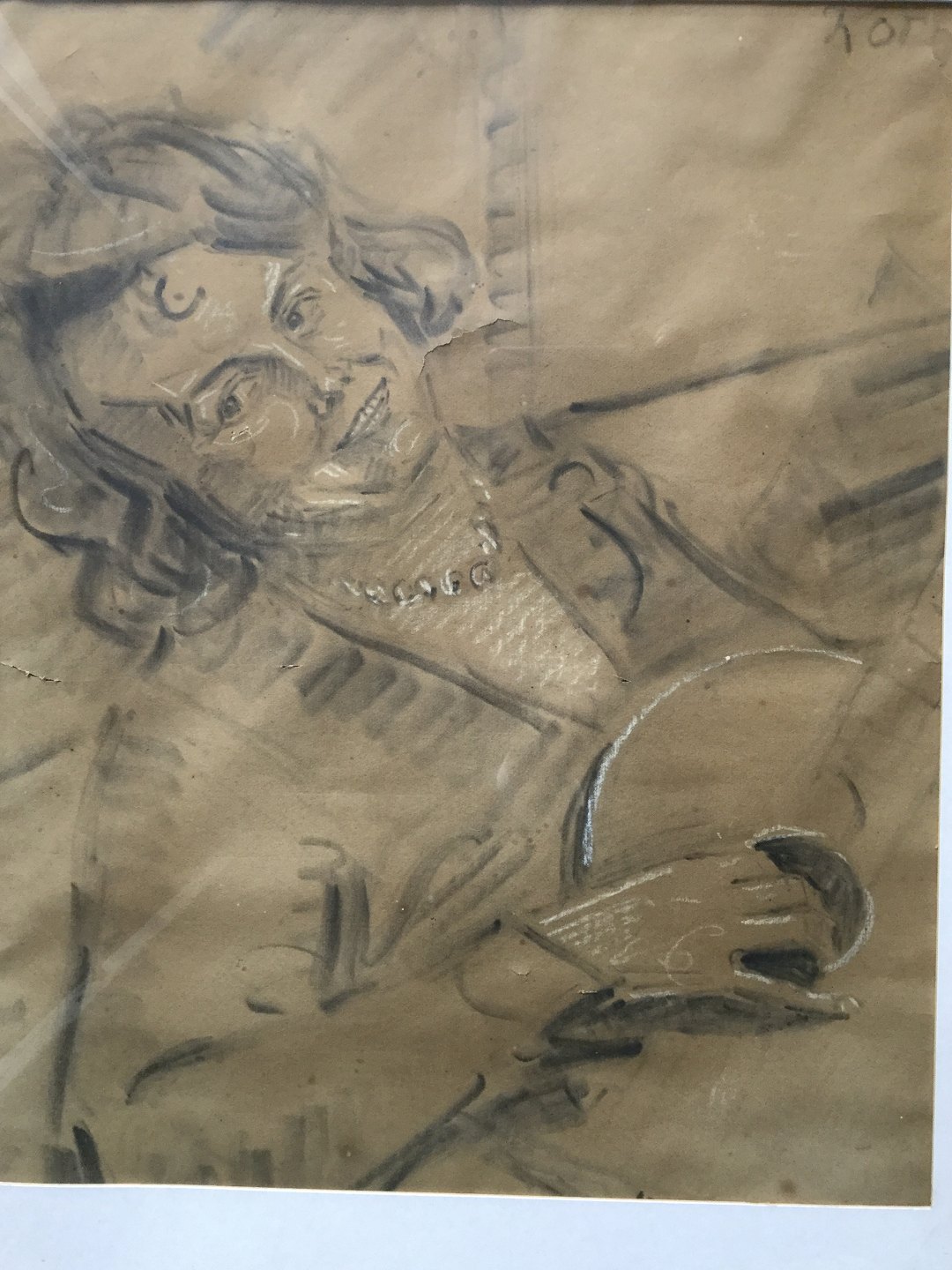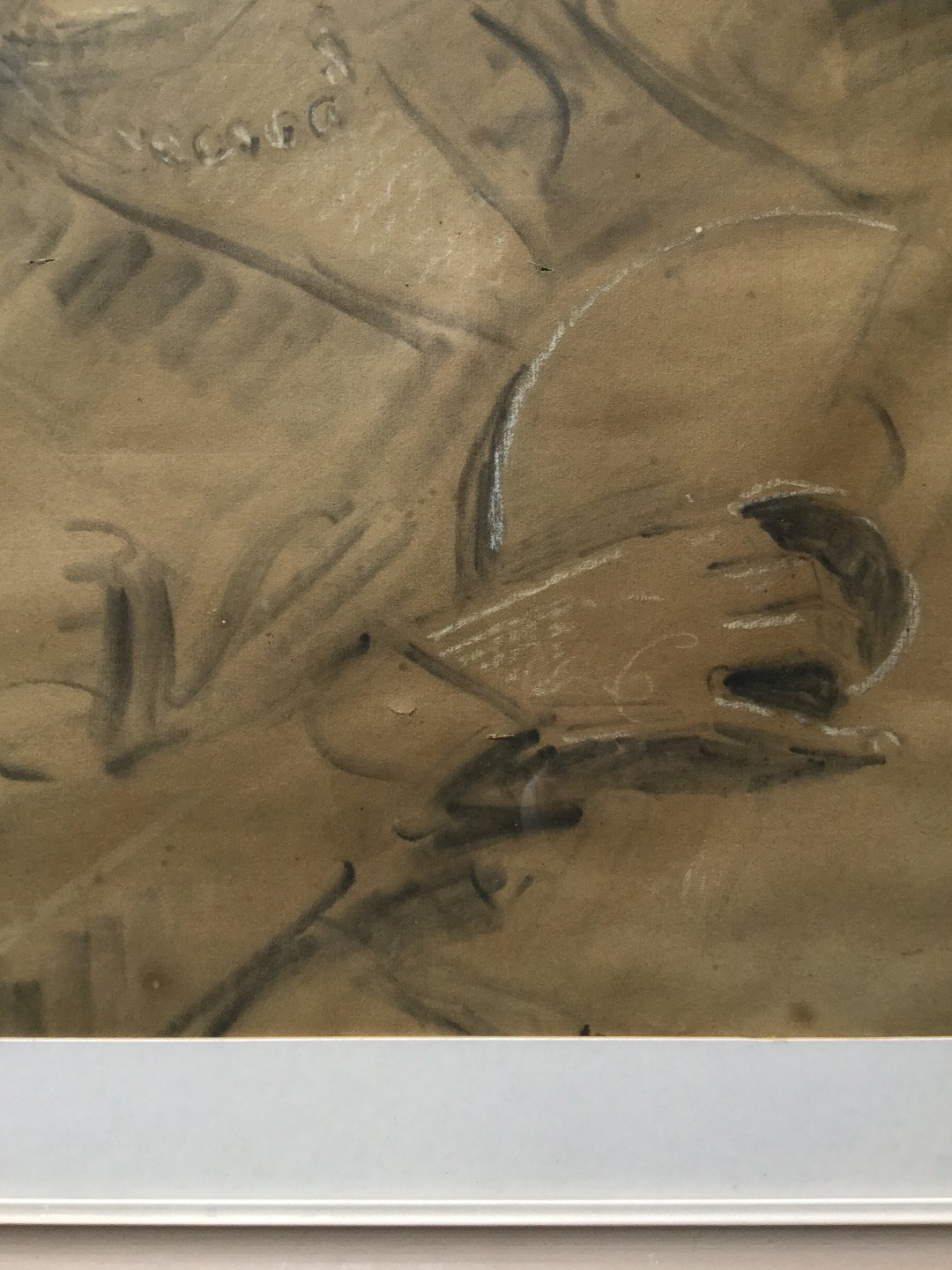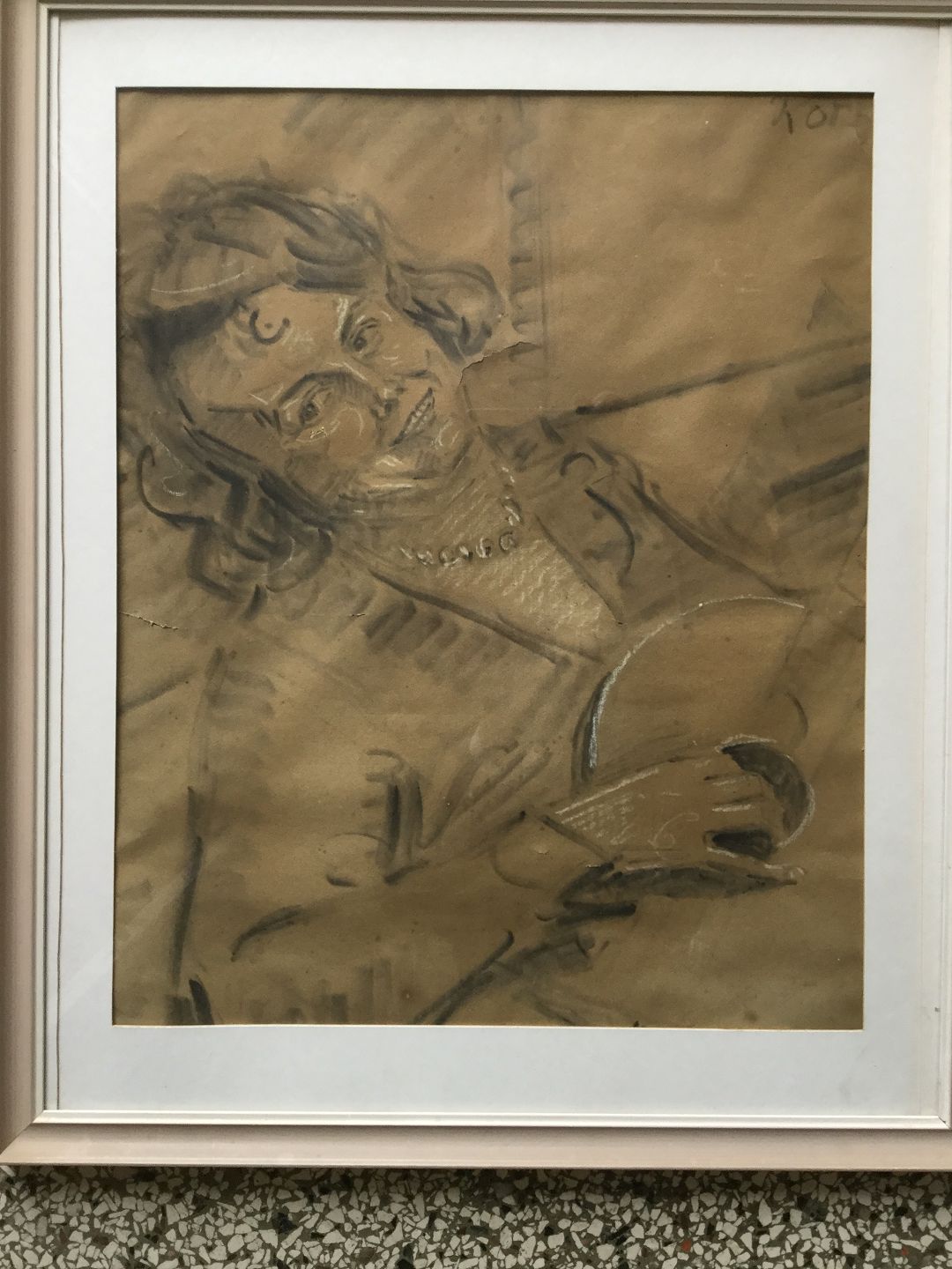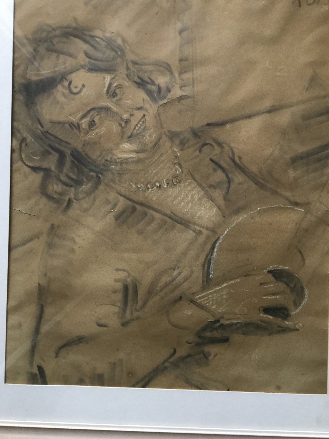 Tegning af H.J. Korn - guitarspillende kvinde.