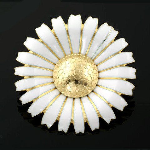 Georg Jensen Marguerit / Daisy Broche i forgyldt Sterling Sølv med hvis emalje - Margrethe II