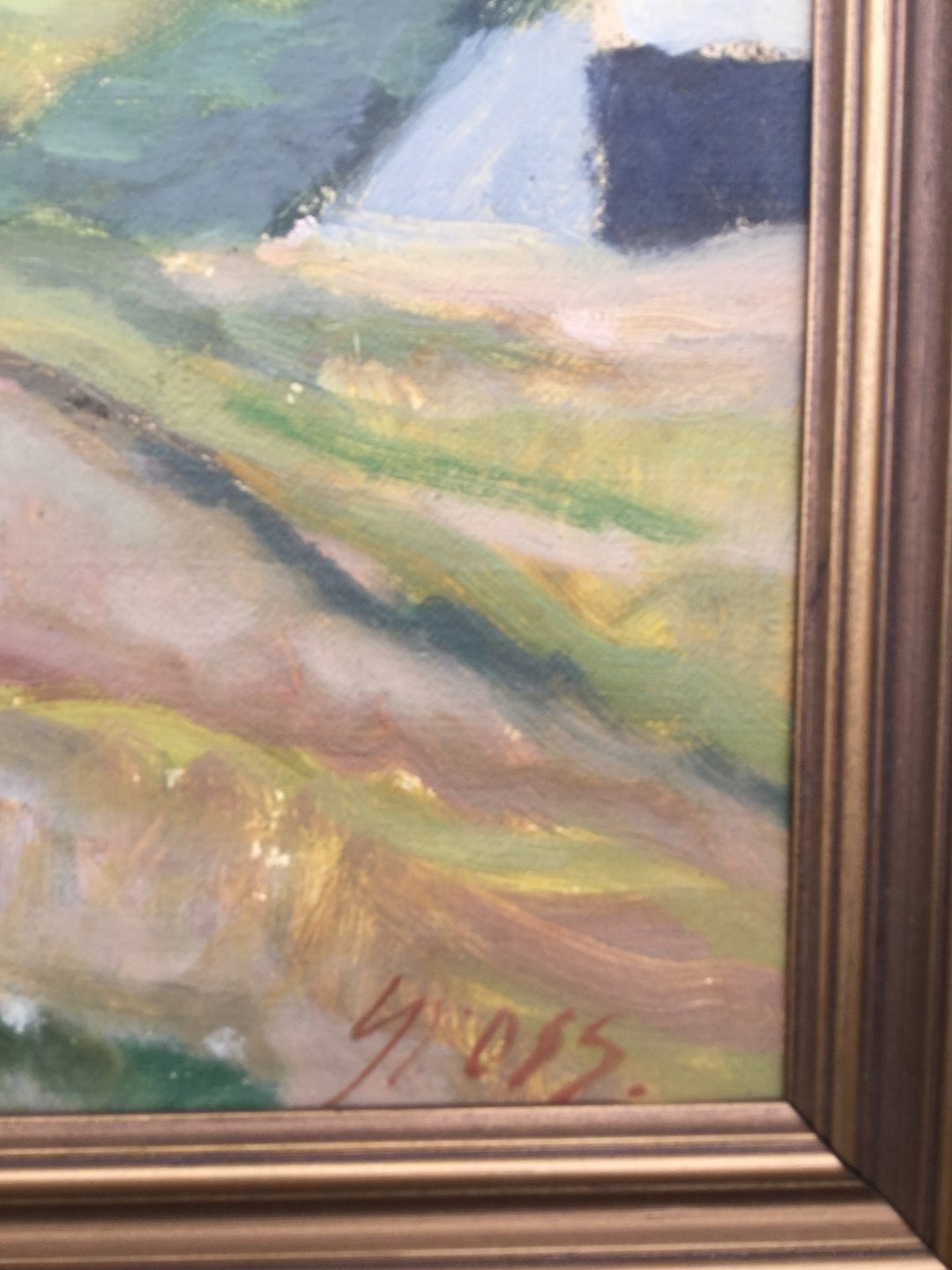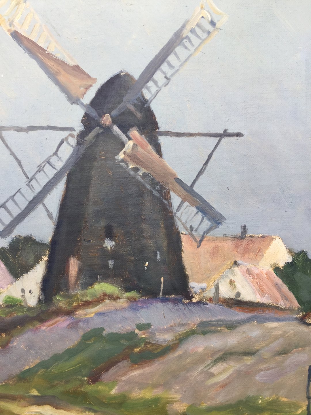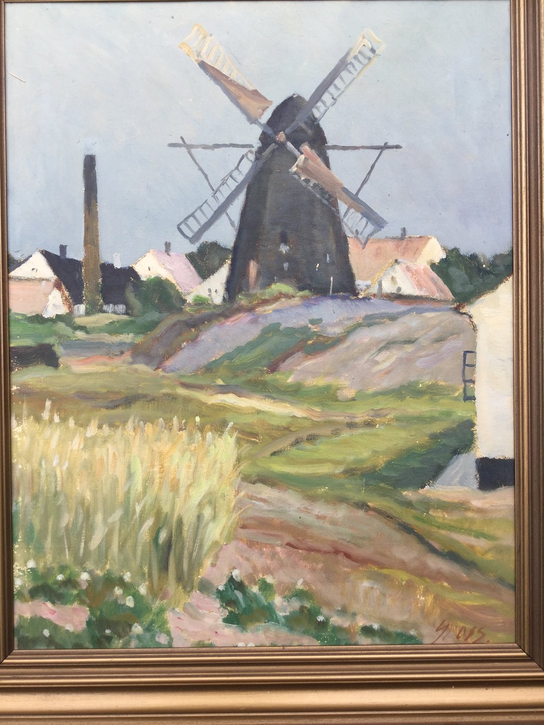 Maleri - Einar Gross - Parti med Blokhus Mølle, Hune.