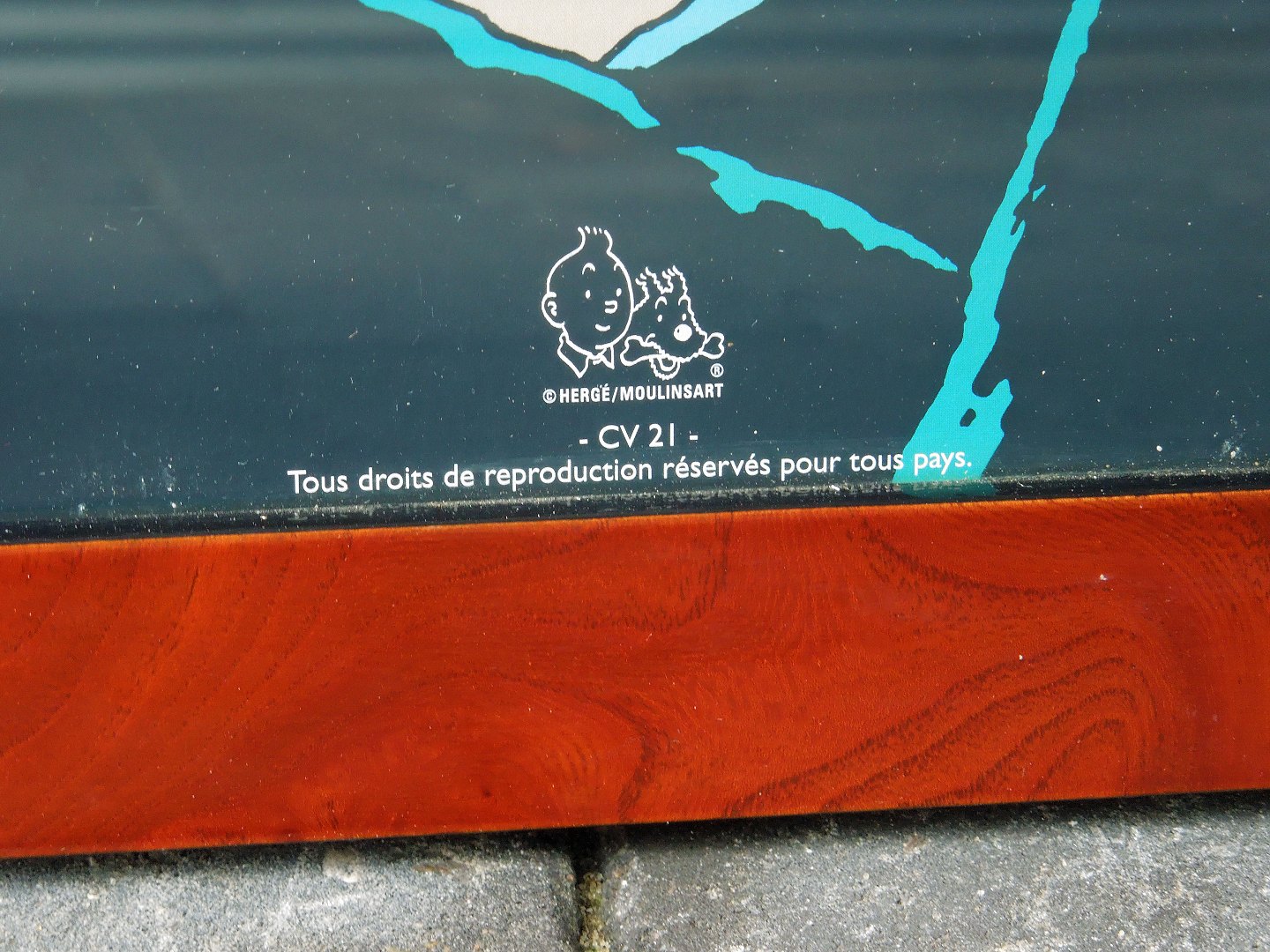 Tintin plakat af Herge med skriften "Les aventures de Tintin Vol 714 Pour Sydney"