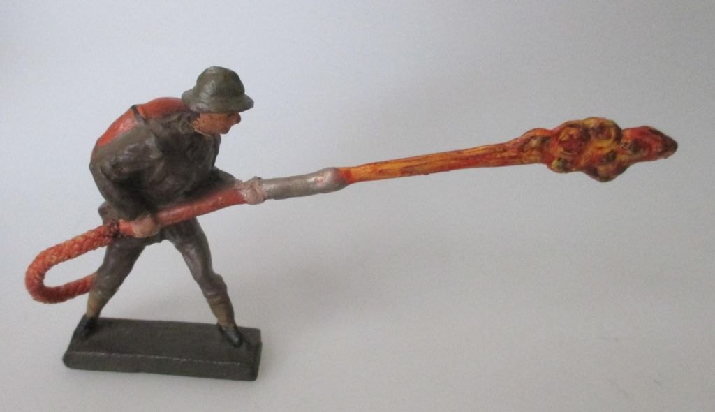 Fransk flammekaster, 1930'erne, Lineol, Tyskland. Højde: 7 cm. Længde: 14 cm. Stemplet.