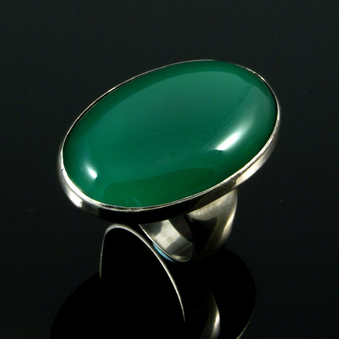 Georg Jensen. Ring i sterling sølv med grøn agat #90B