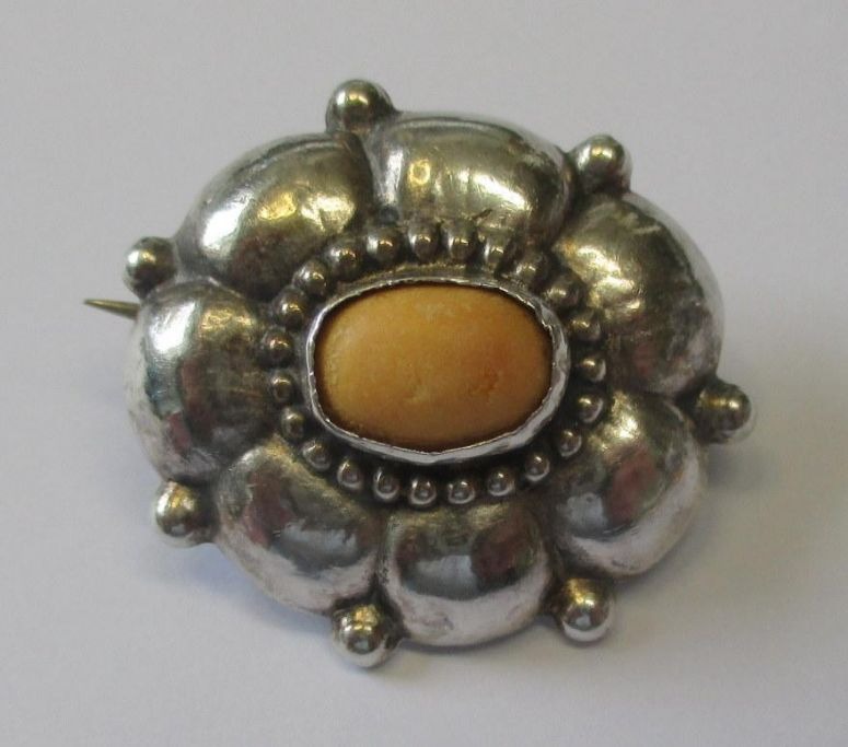 Jugend Sølv brosche med rav, C.M. Cohr (1893 - 1937) Frederica, Danmark