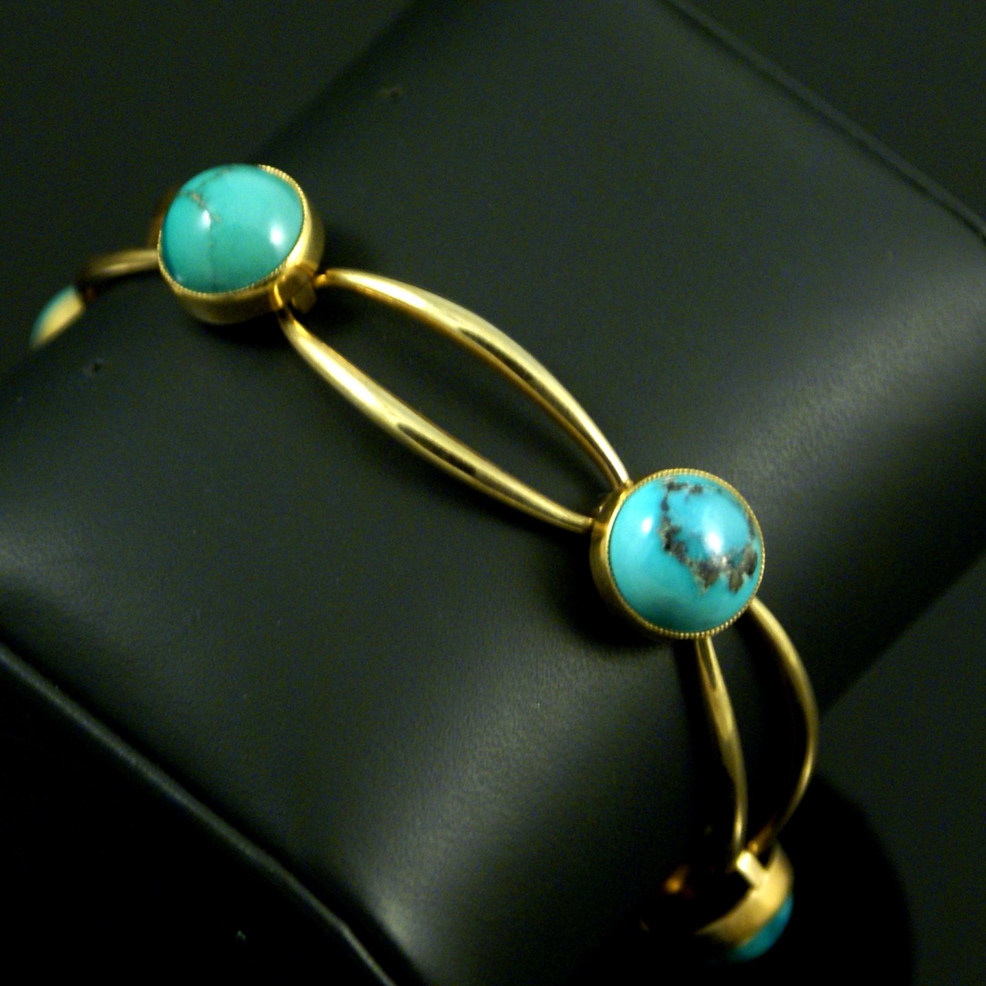 Hans Hansen Armbånd i 14k guld med turkiser #203. 1960erne