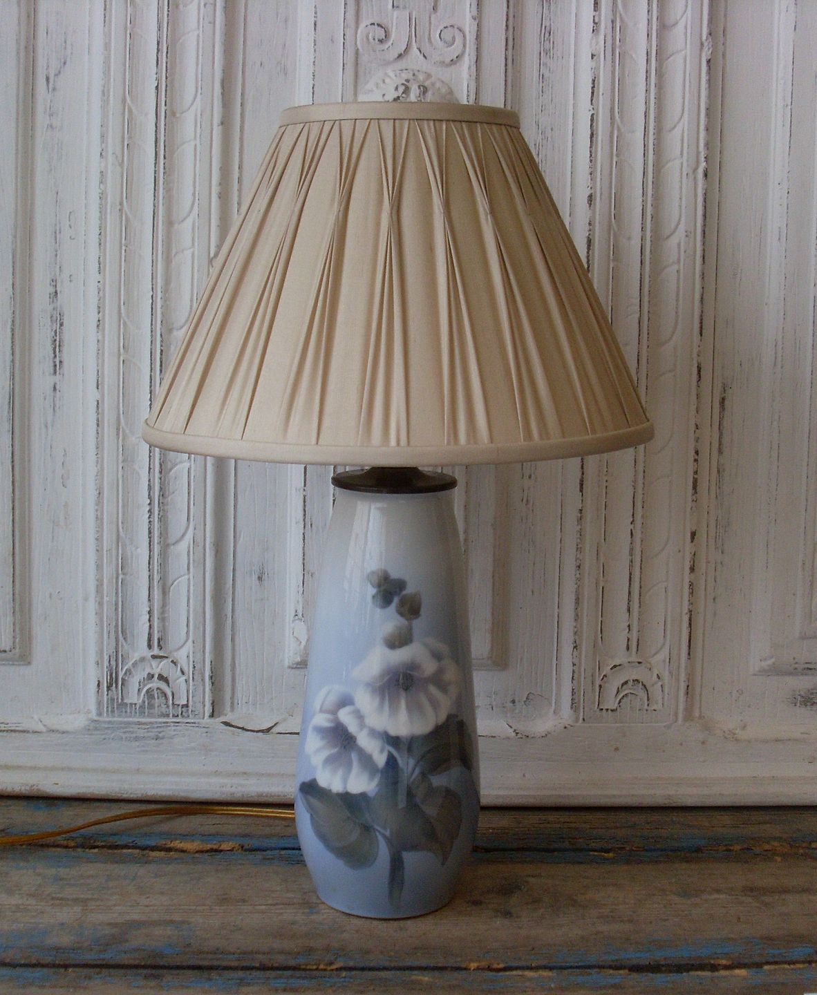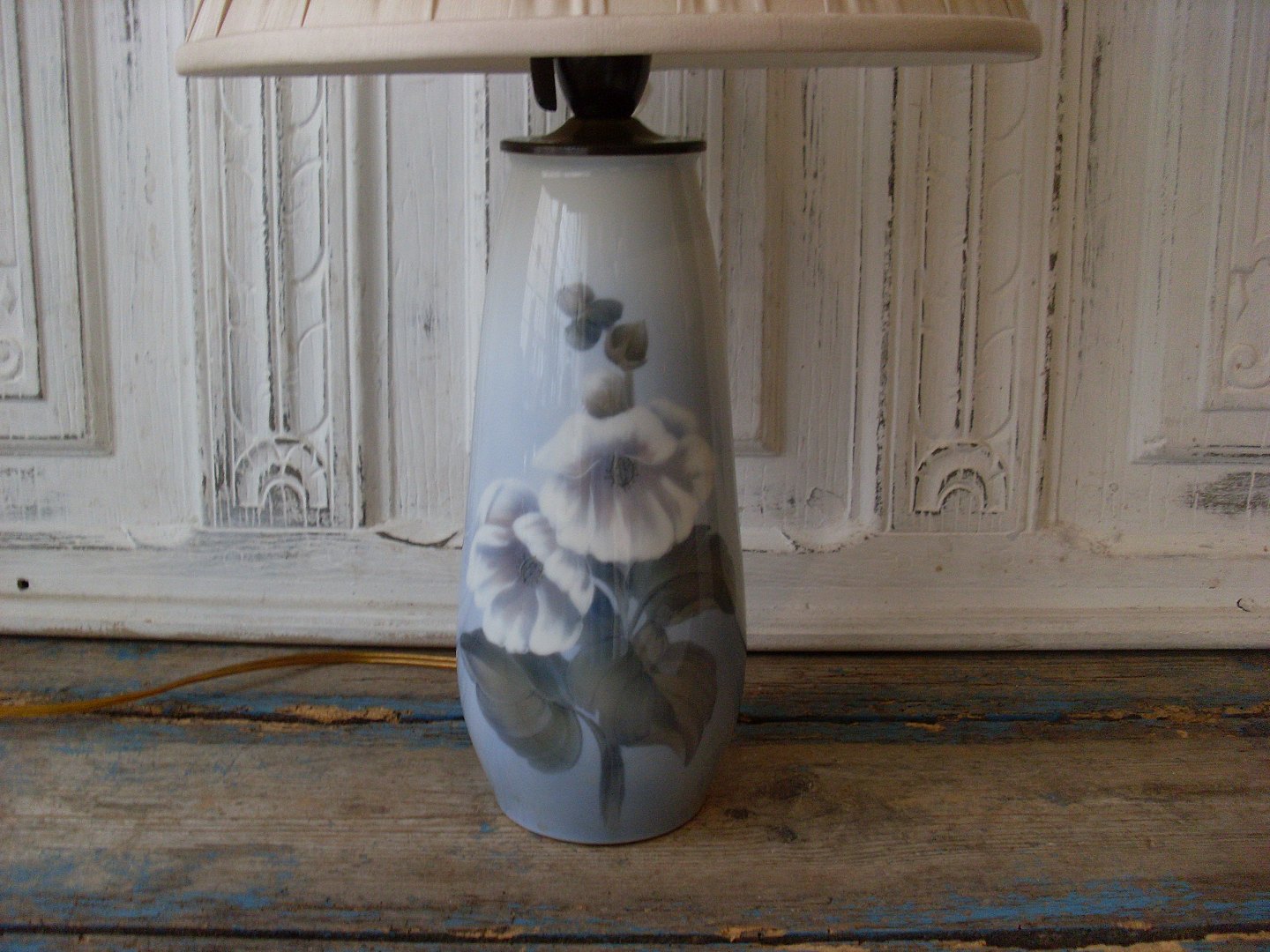 Royal Copenhagen bordlampe dekoreret med stokrose.