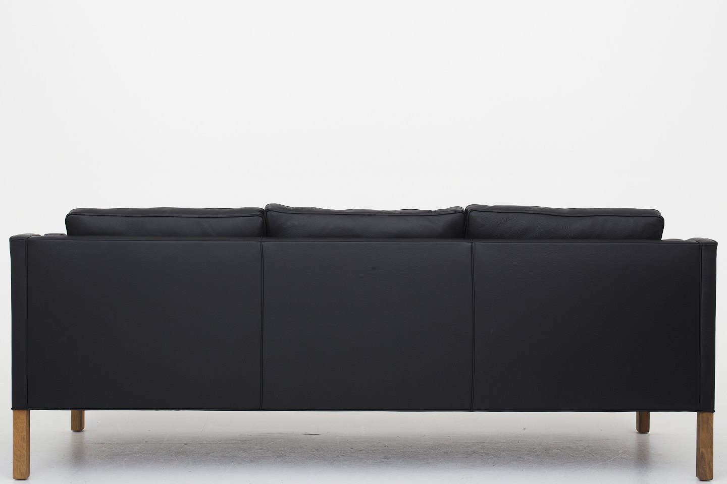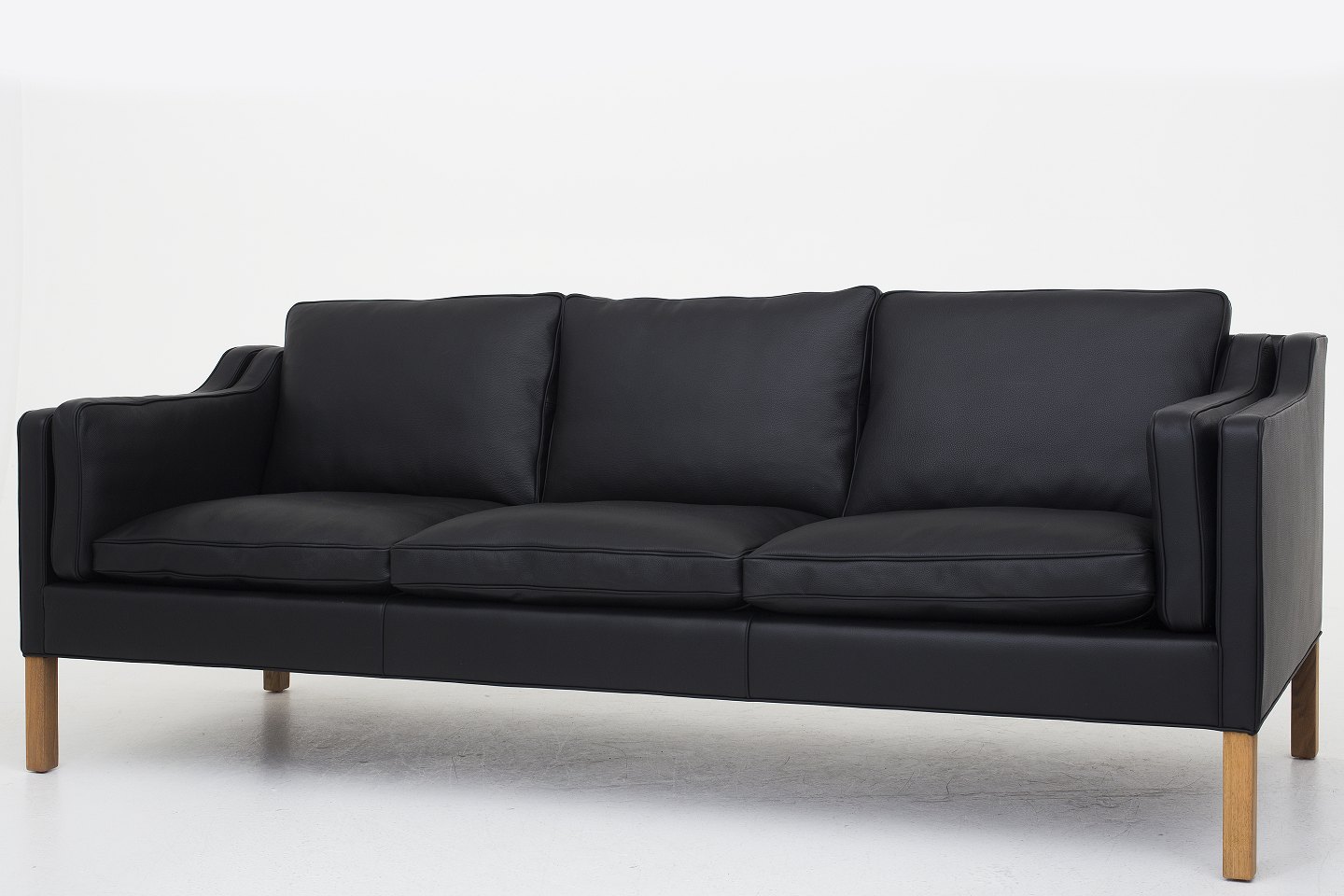BM 2213 - Nybetrukket sofa i sort Klassik-læder og ben i eg