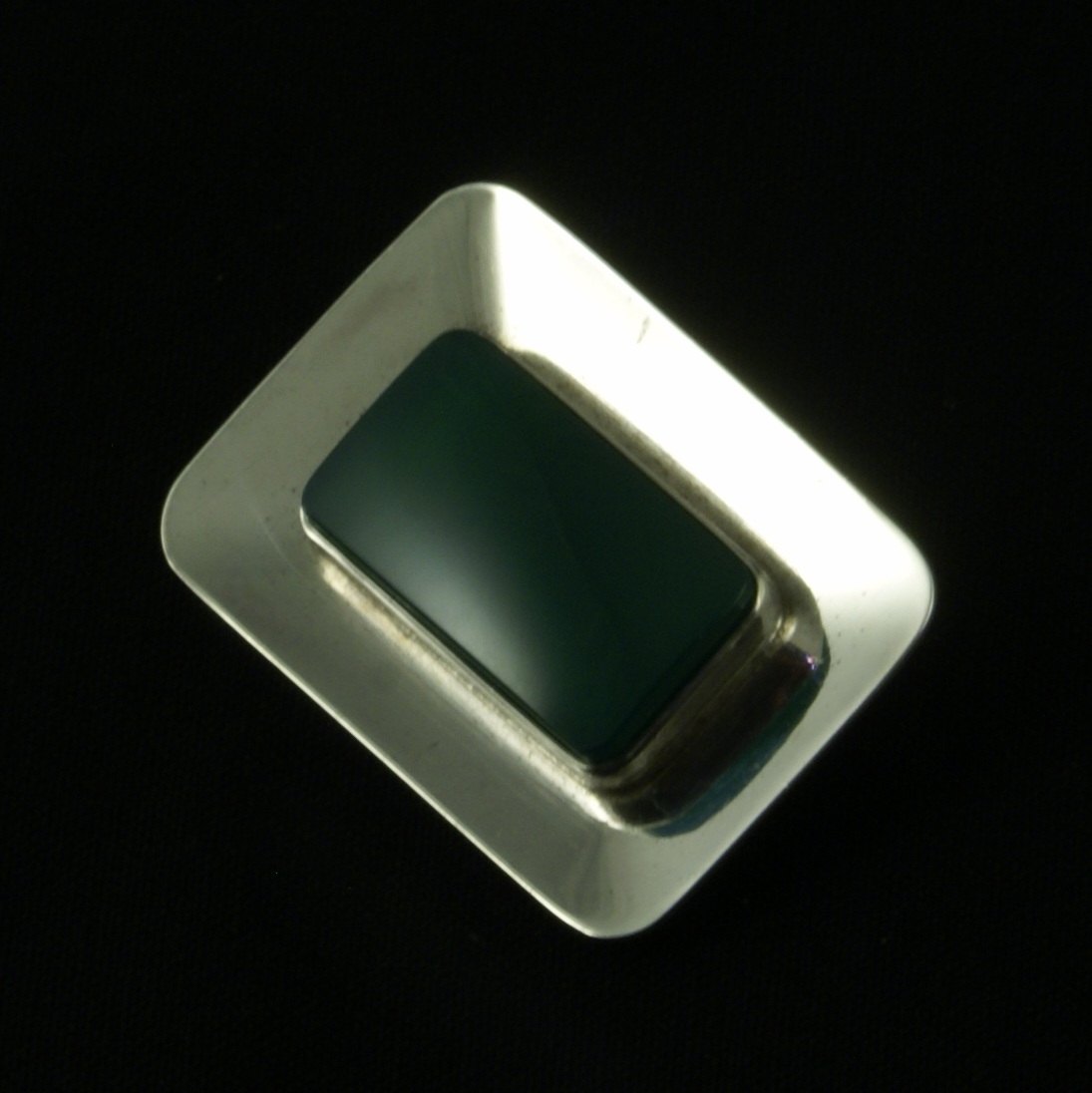 N. E. From - Denmark. Sterling Silver Brooch with Green Agate. 1960s