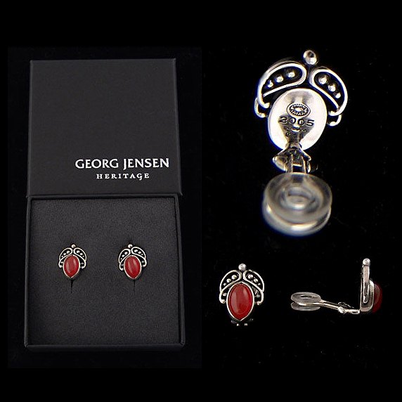 Georg Jensen Heritage årssmykke 2005. Øreclips med karneol.