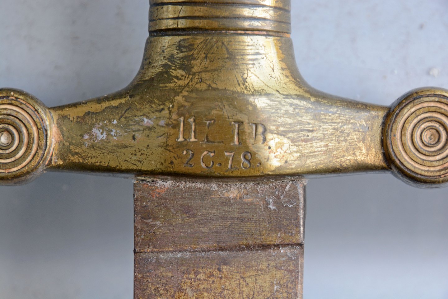 Sidevåben for Fodfolk 1854. Indgraveret i skaftet står "11 LIB", "2C 78".