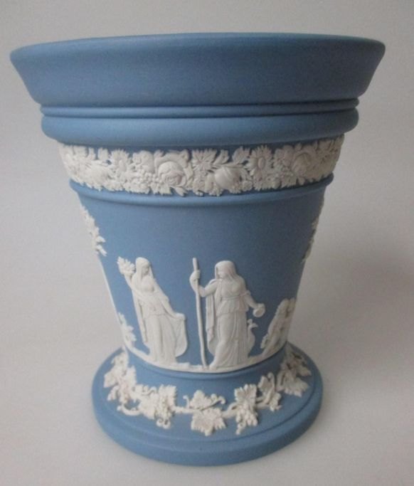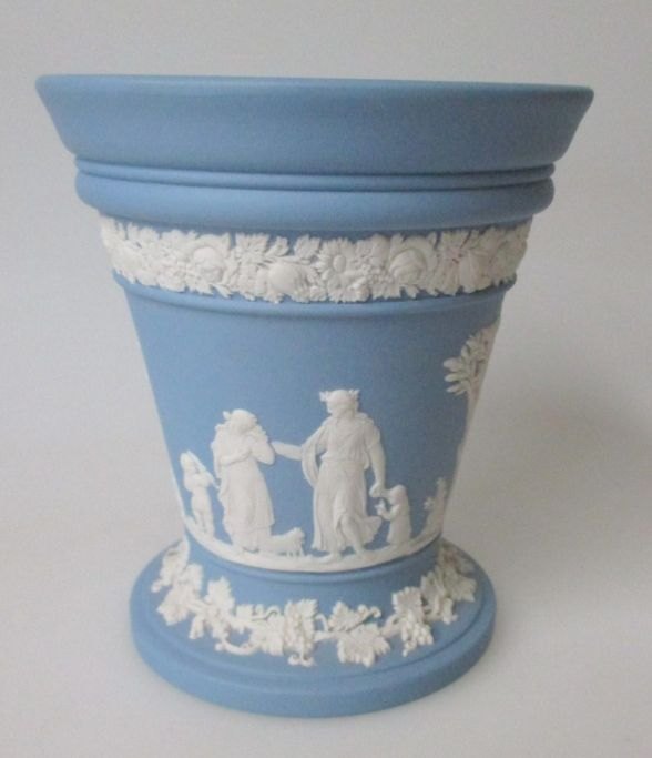 Wedgwood blue jasper bouquettière, 20. årh. England. Konisk form. Med en klasisk frise. Højde.: 12,5 cm. Stemplet.