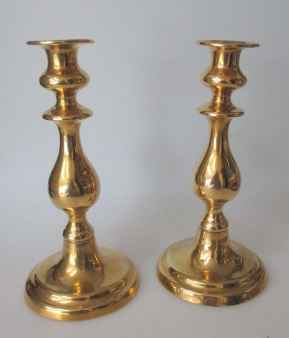 Par engelske messing stager, 19. årh. Profileret stamme. Højde.: 21 cm.