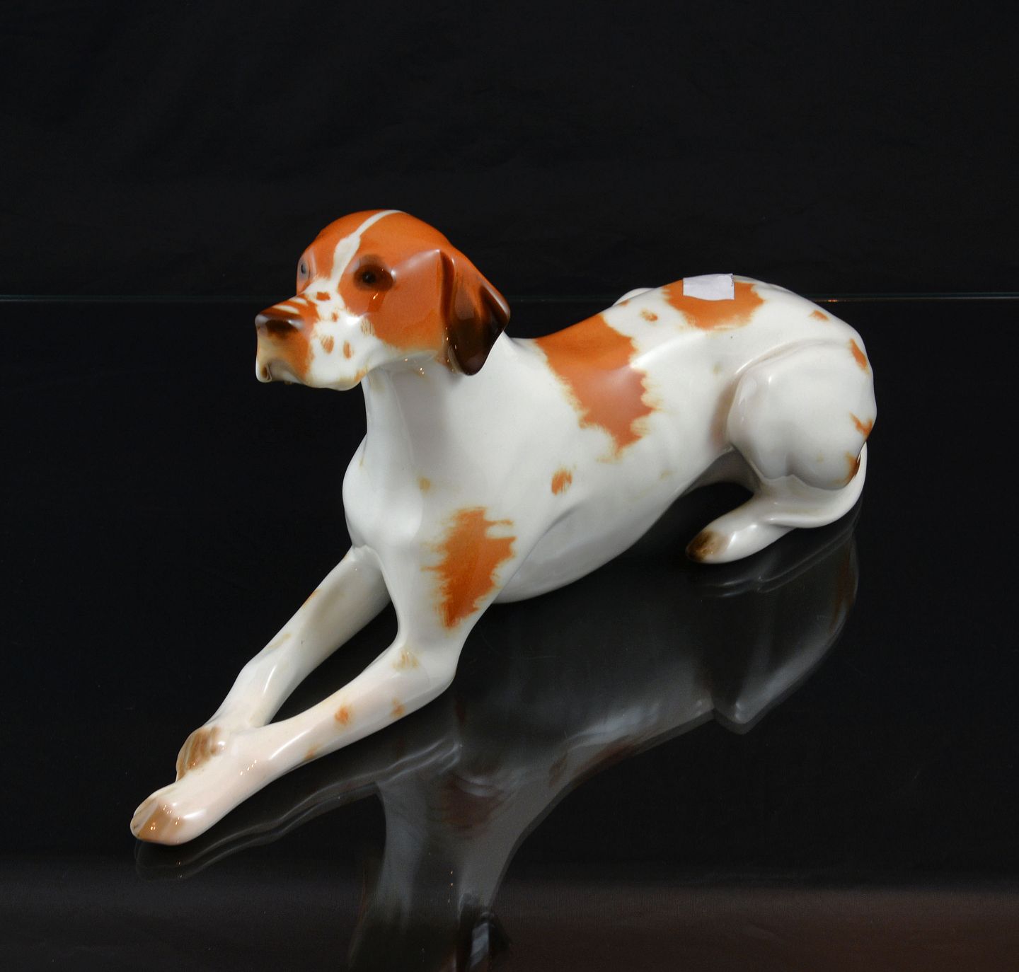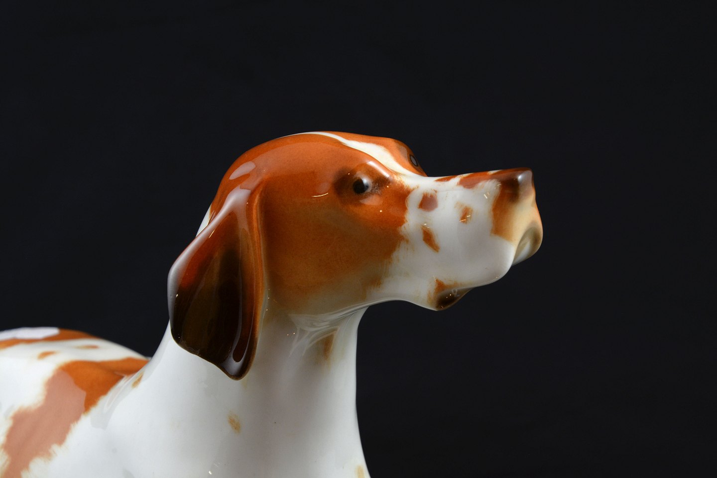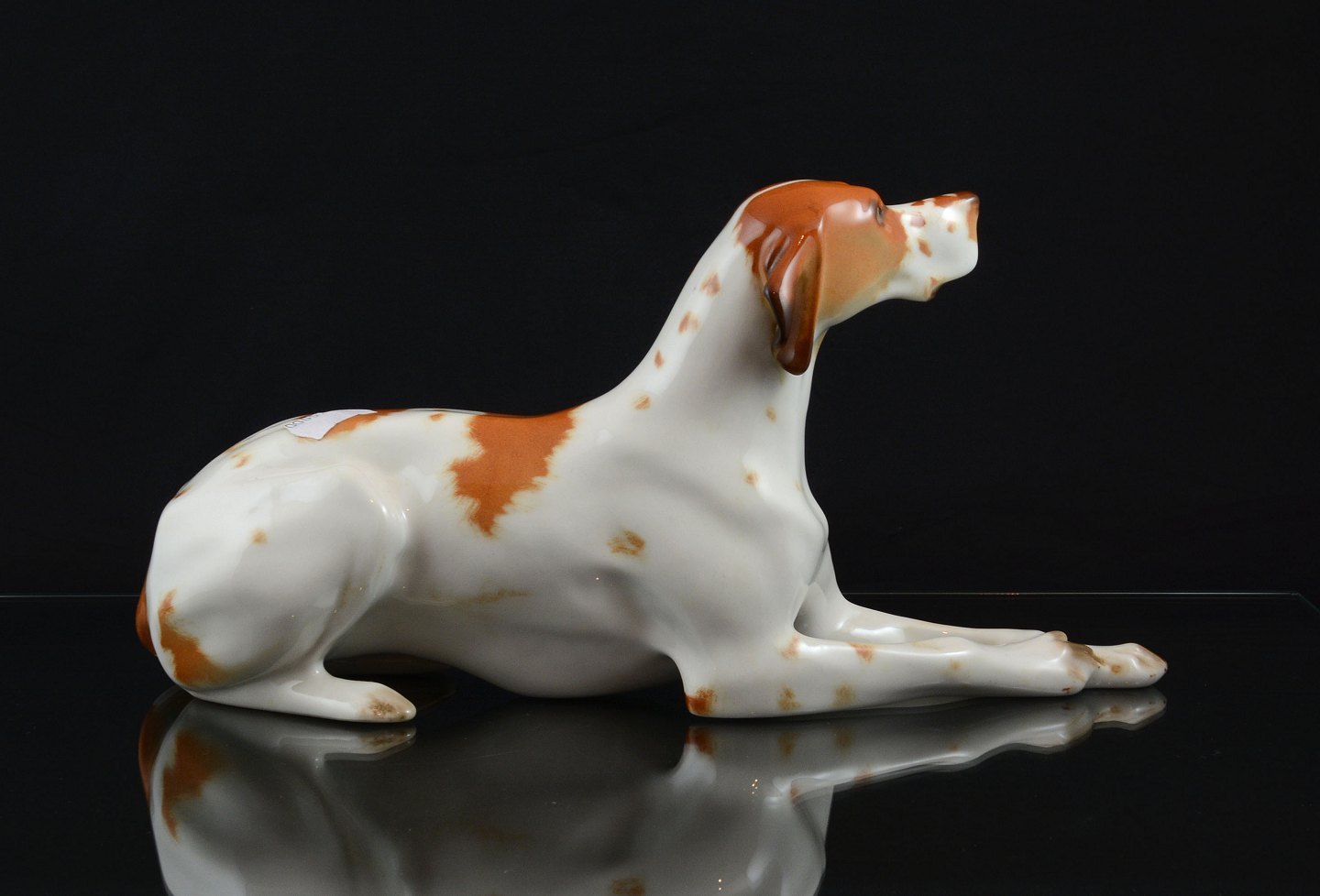 Russisk figur i porcelæn med motiv af hunderacen Pointer
