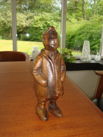 Tin Tin Håndskåret træfigur i fin stand, Højde 23 cm