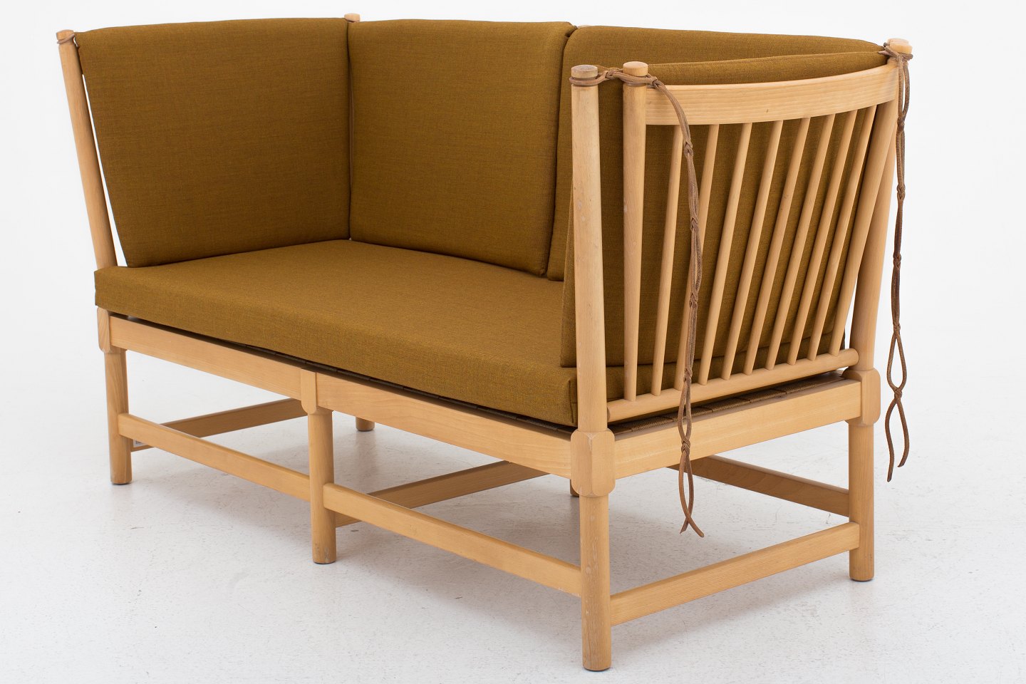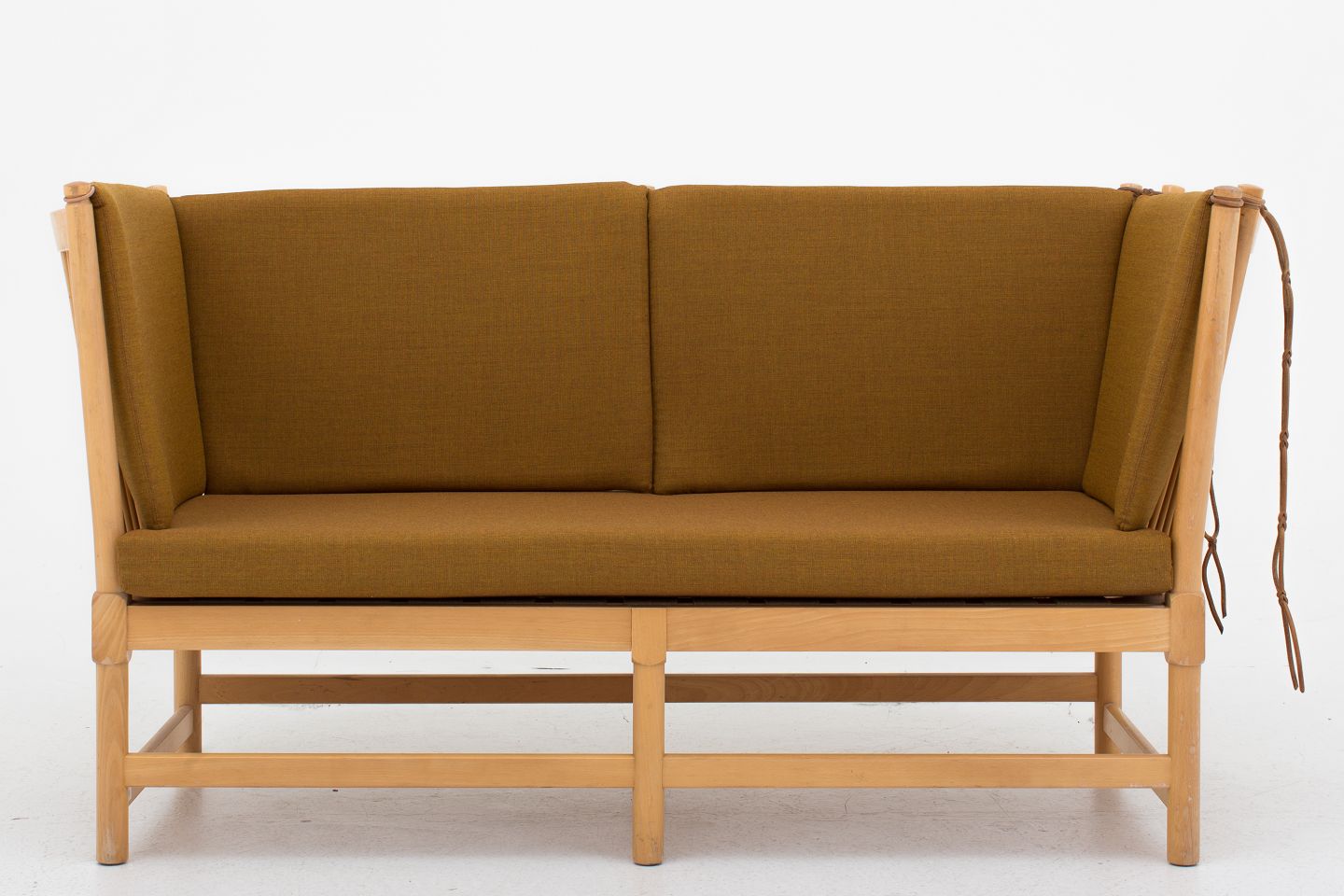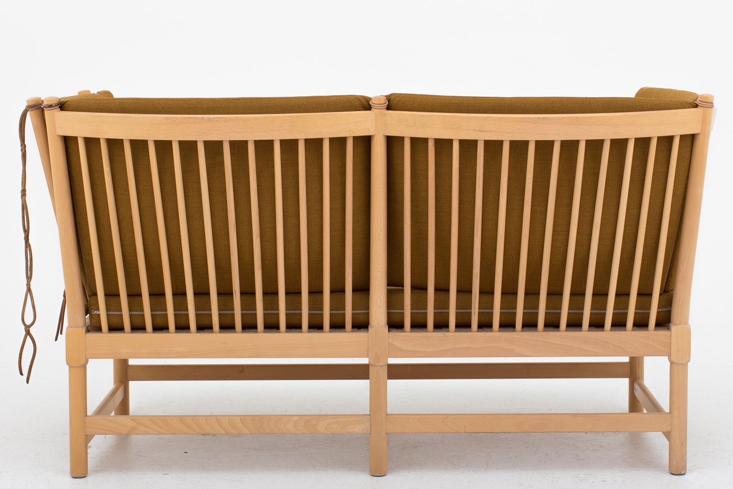 BM 1789 - Nybetrukket Tremmesofa i bøg med nye hynder i Canvas 424. KLASSIK tilbyder polstring af Tremmesofaen med stof eller læder efter eget valg. Kontakt os venligst for mere information.