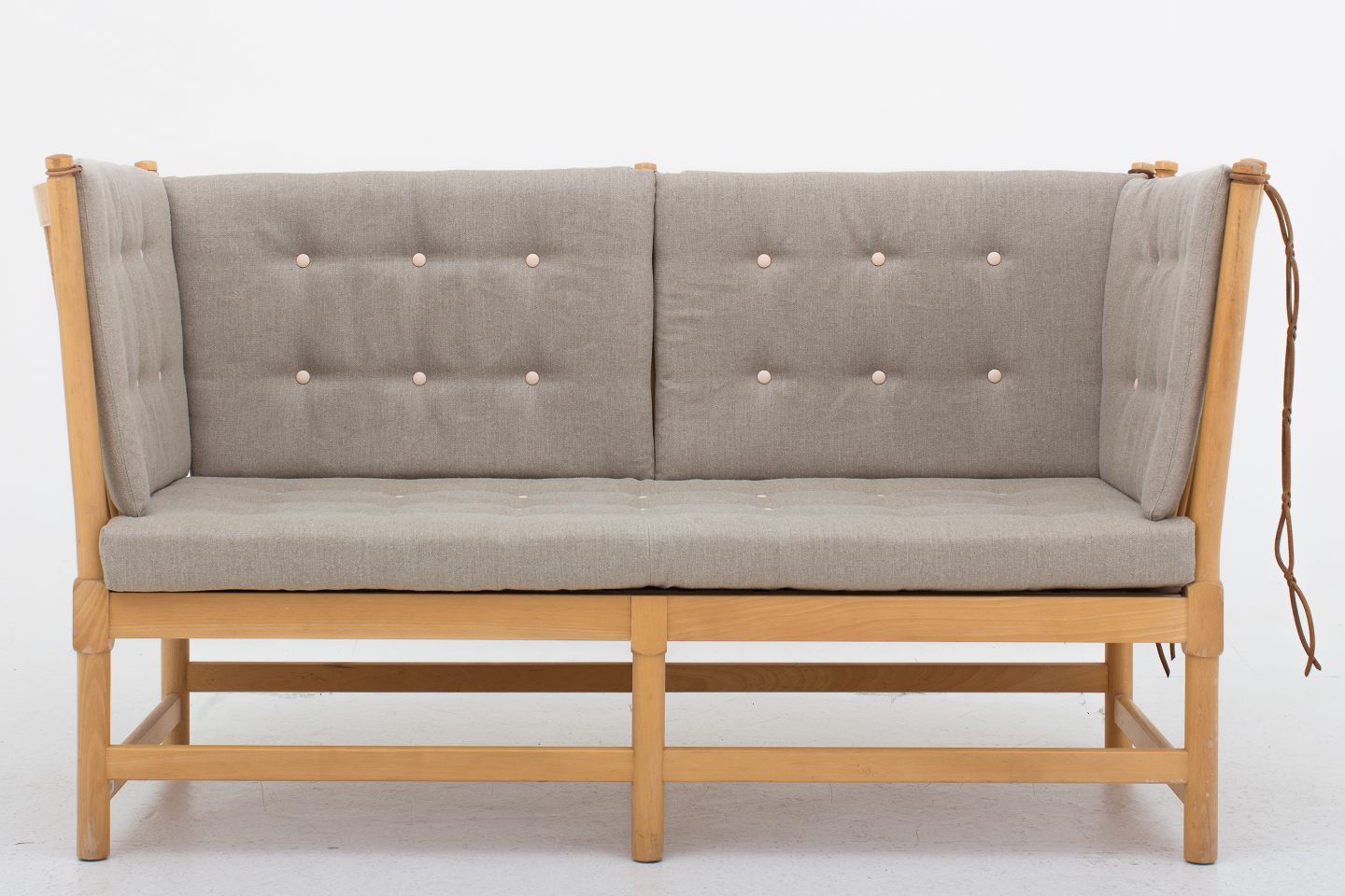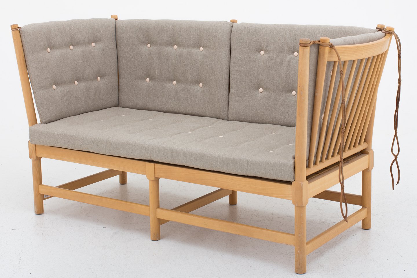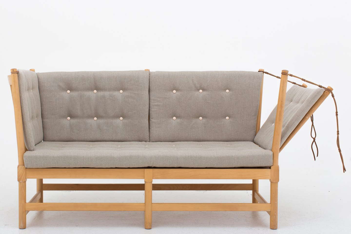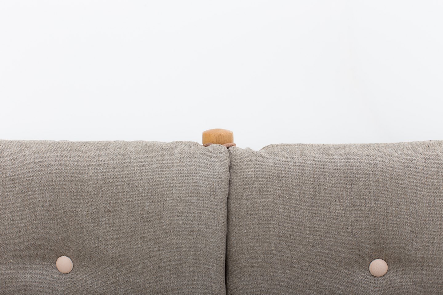 BM 1789 - Nybetrukket Tremmesofa i bøg med nye hynder i vasket kanvas og knapper i vegetallæder. KLASSIK tilbyder polstring af Tremmesofaen med stof eller læder efter eget valg. Kontakt os venligst for mere information