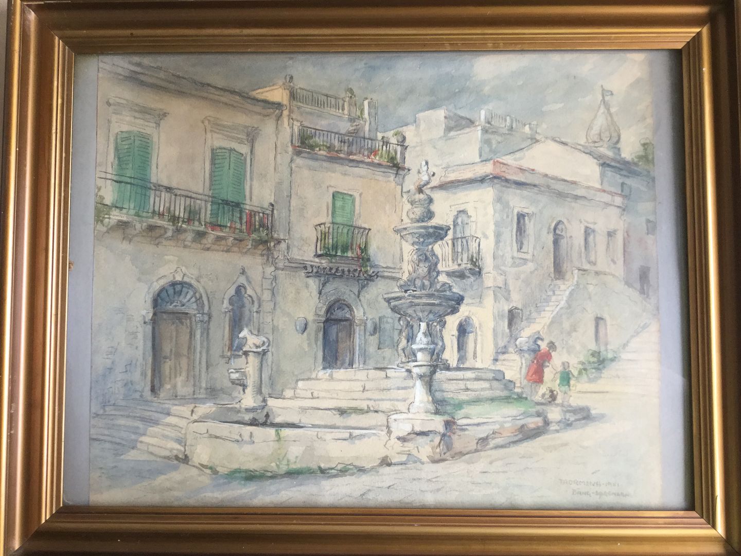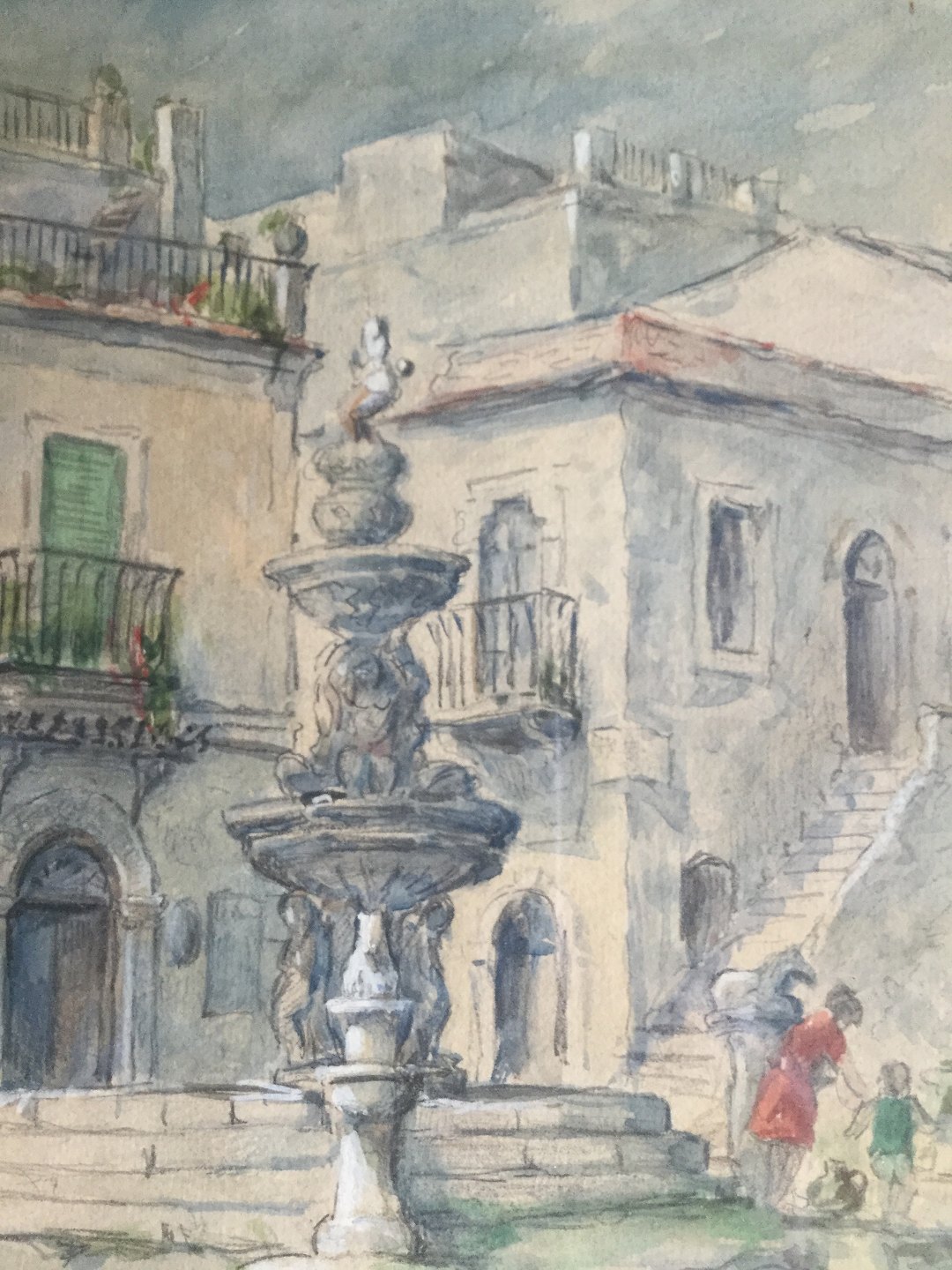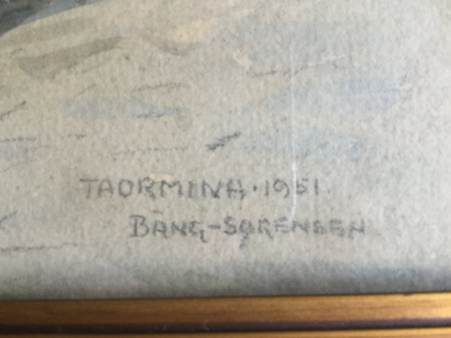 Akvarel af Michael Bang-Sørensen - Parti fra Taormina, Sicilien 1951.