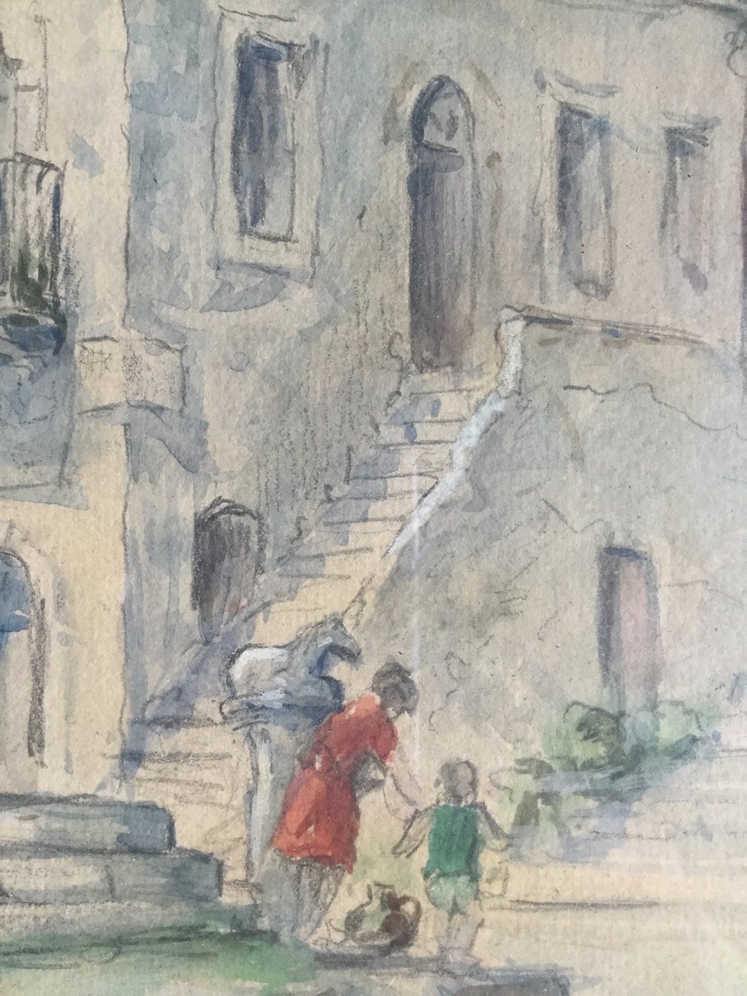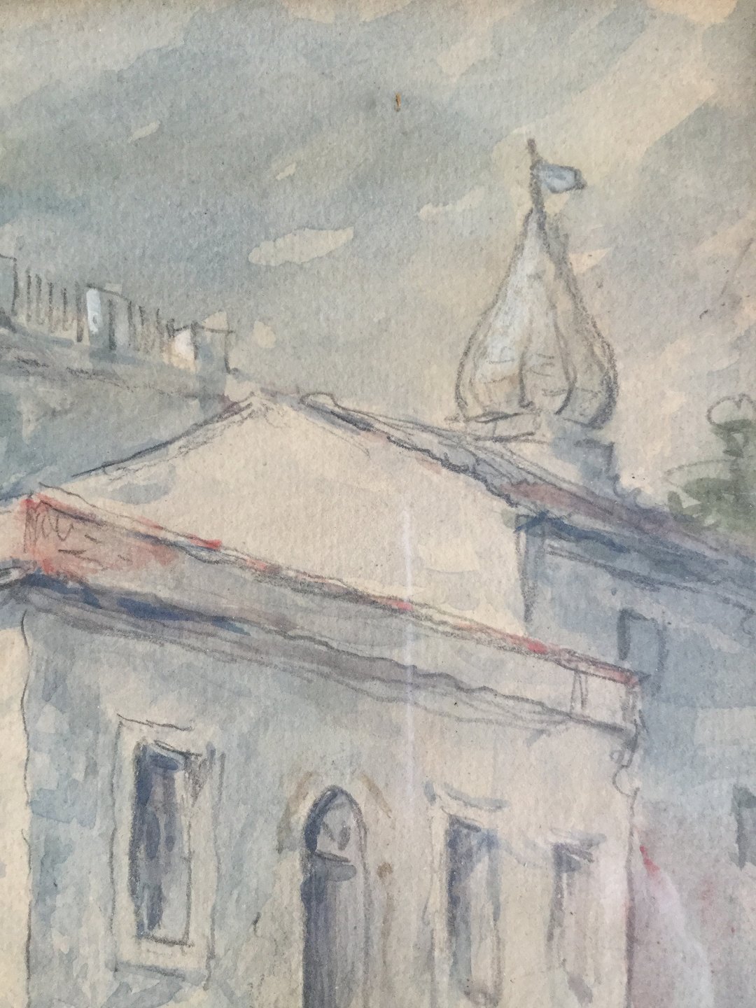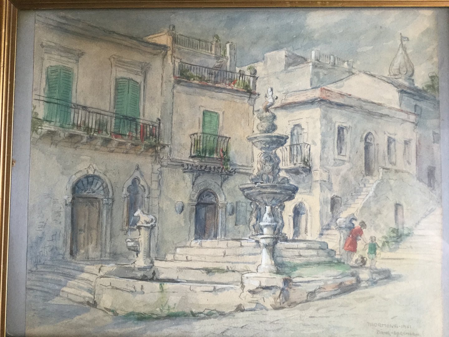 Akvarel af Michael Bang-Sørensen - Parti fra Taormina, Sicilien 1951.