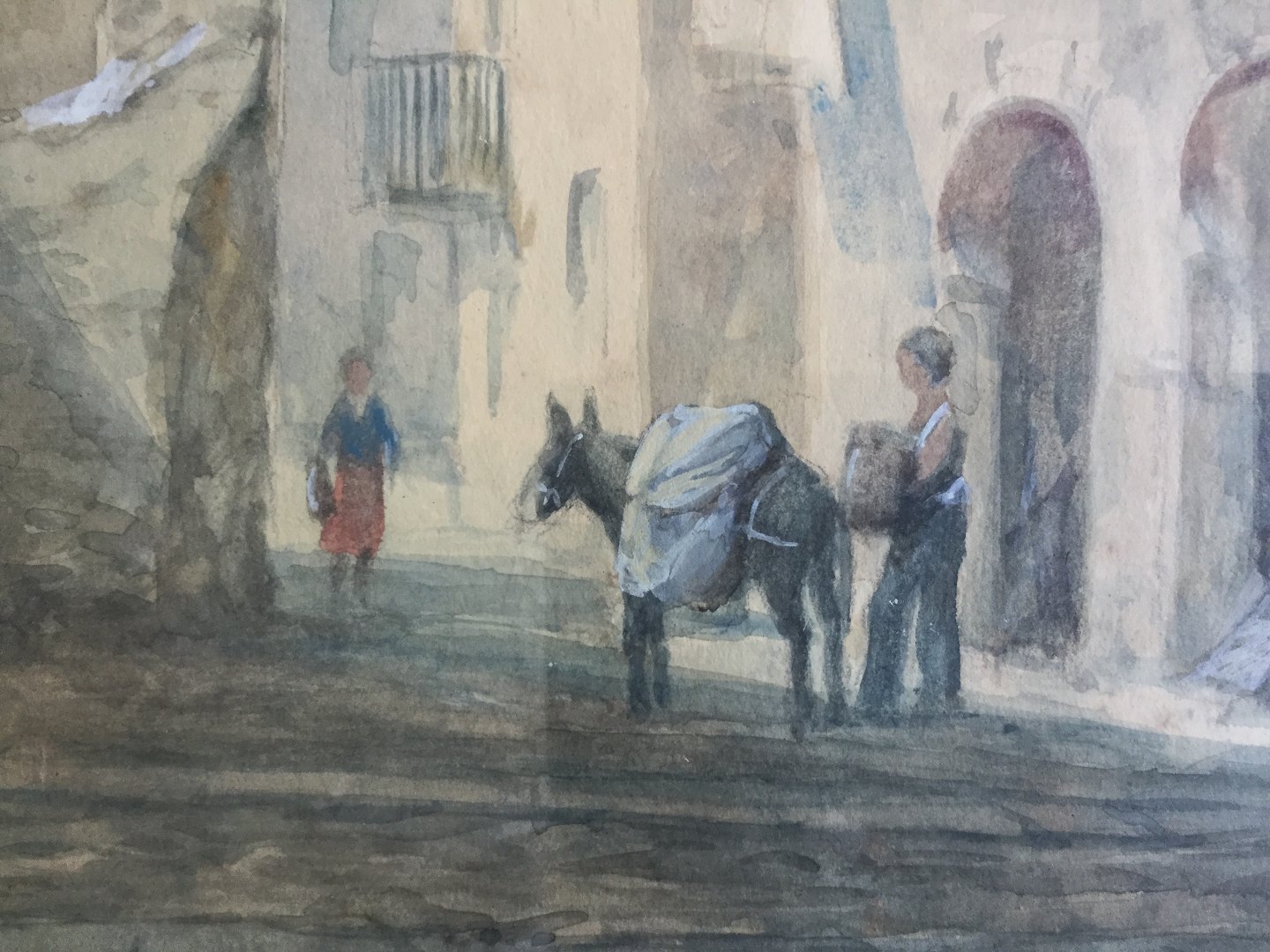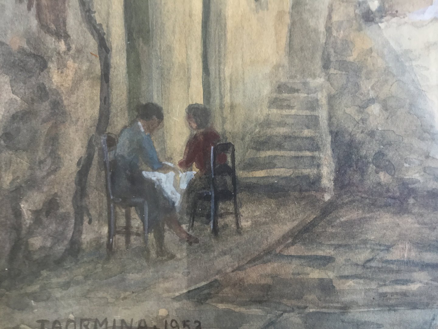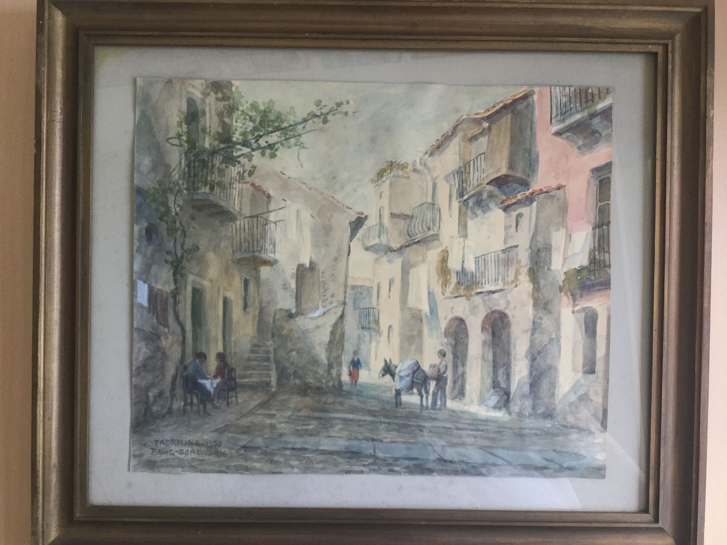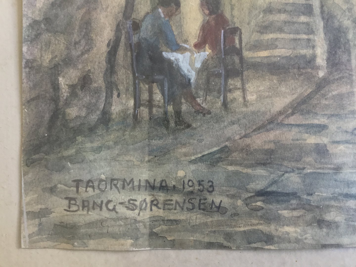 Akvarel af Michael Bang-Sørensen - Parti fra Taormina, Sicilien 1953.