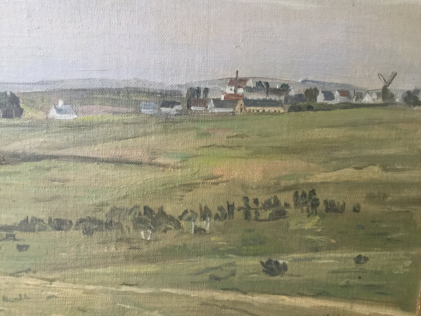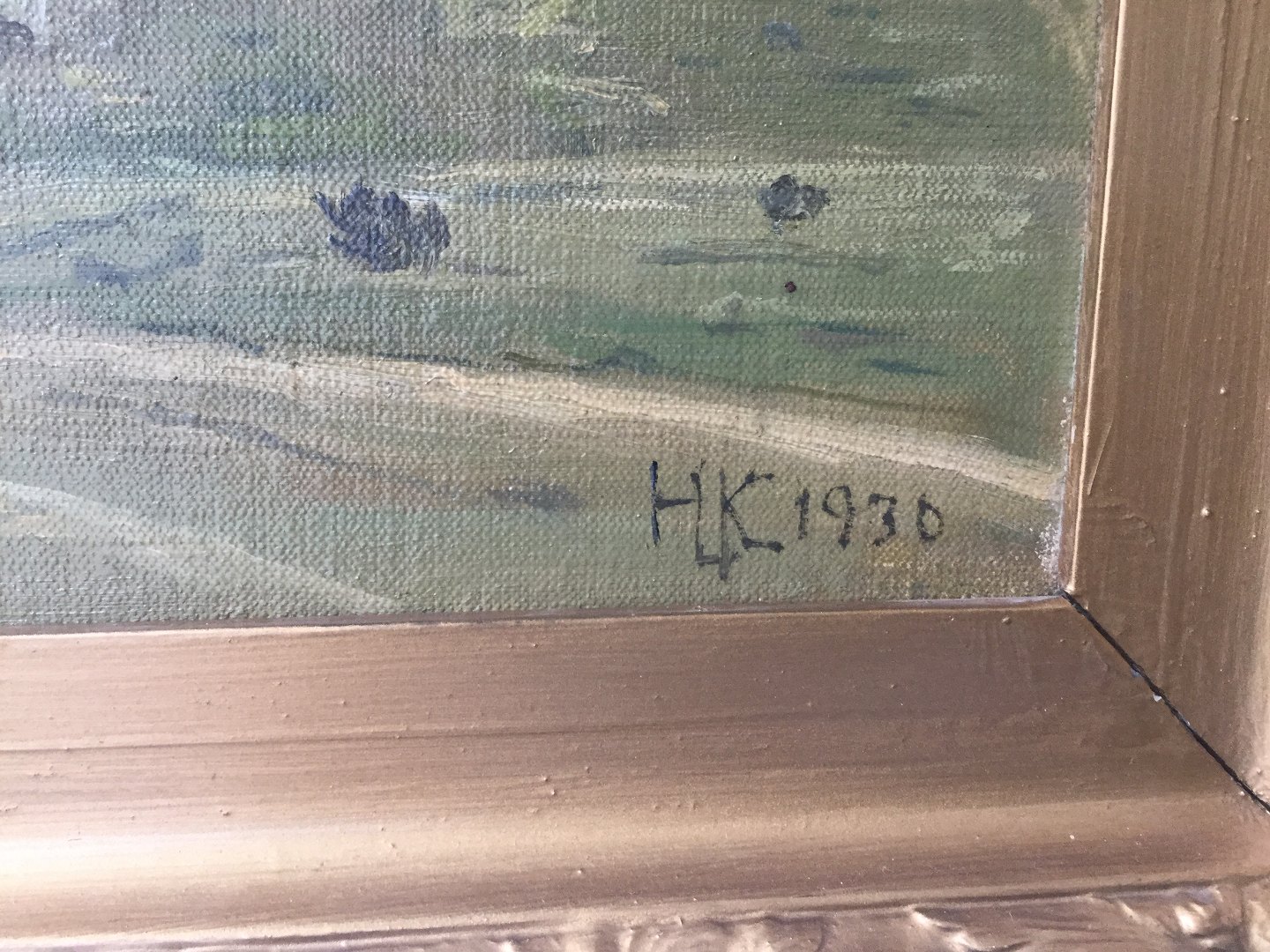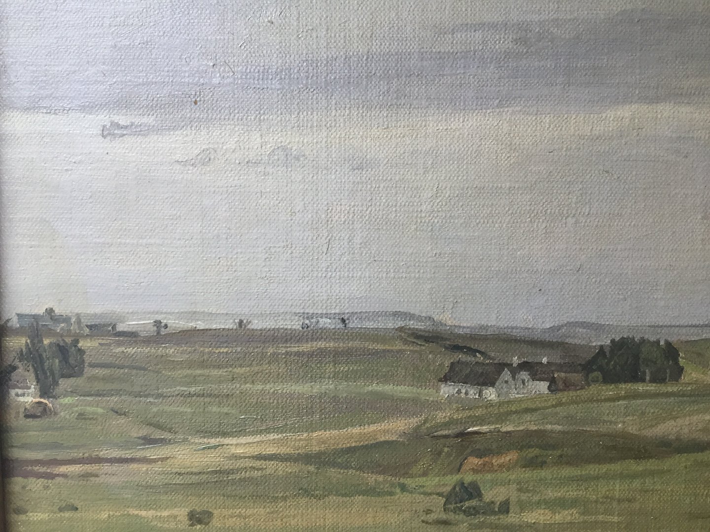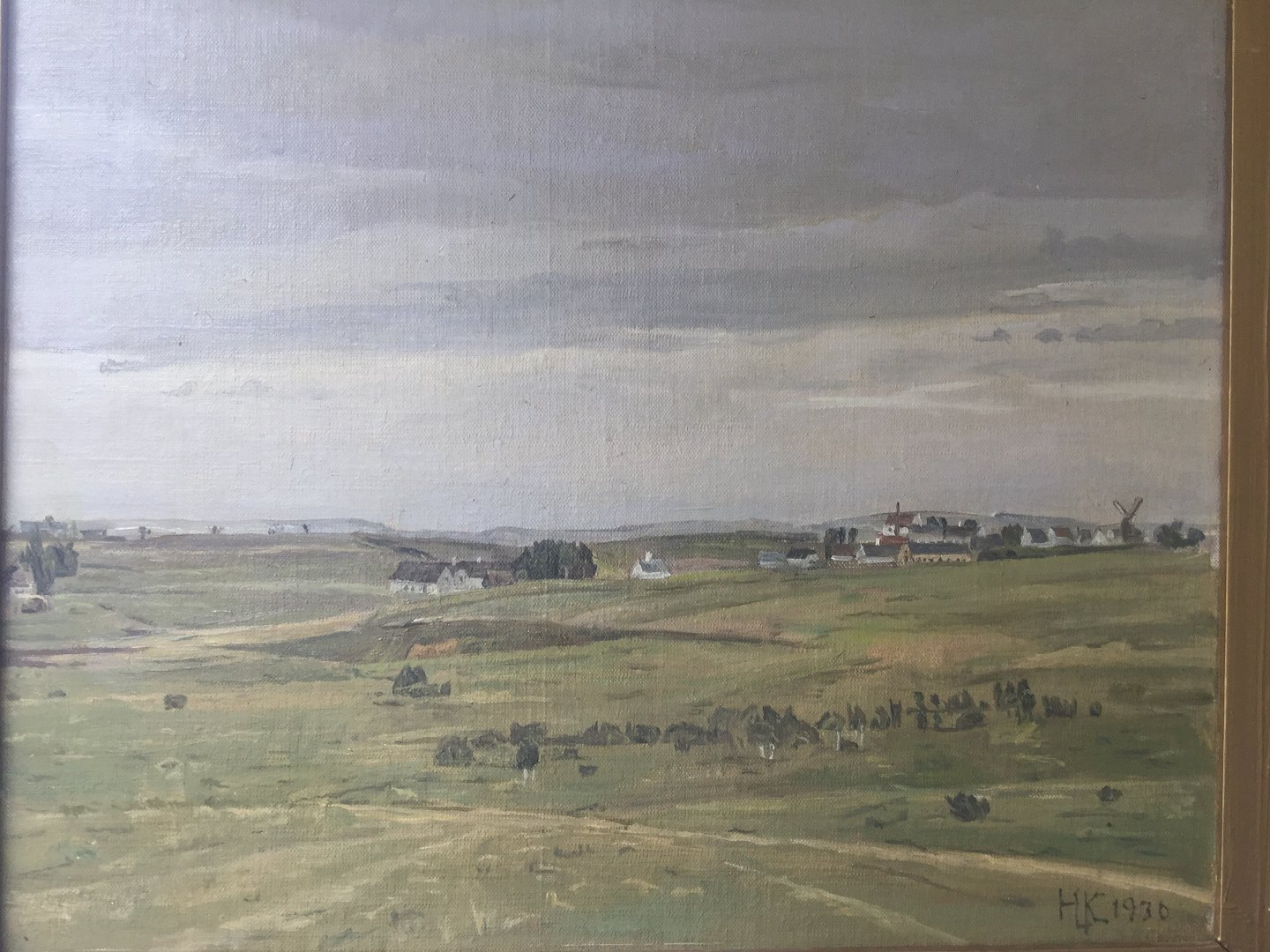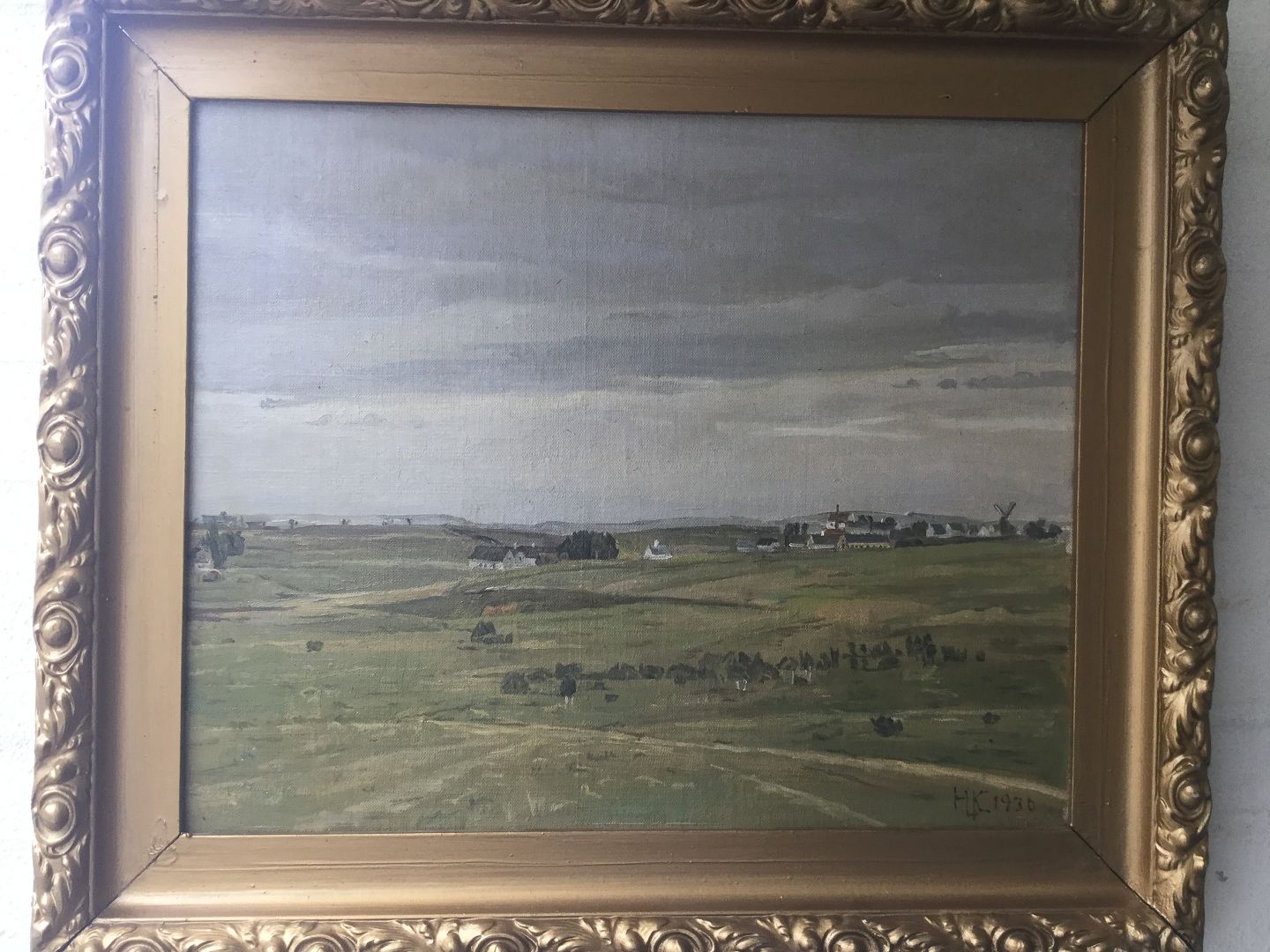 Maleri af Hans Knudsen 1930 - landskab ved Lundø med udsigt ind over Højslev.