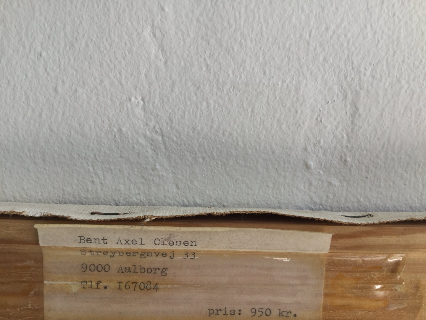 Maleri af Bent Axel Olesen - Huse ved solnedgang 1977.