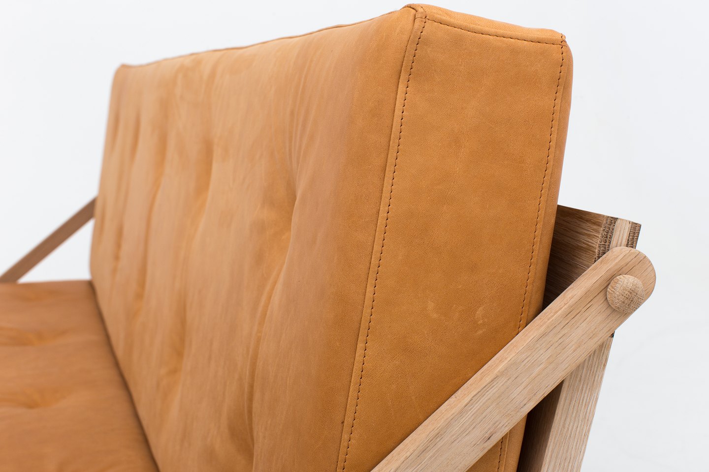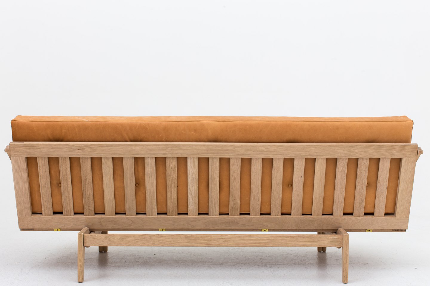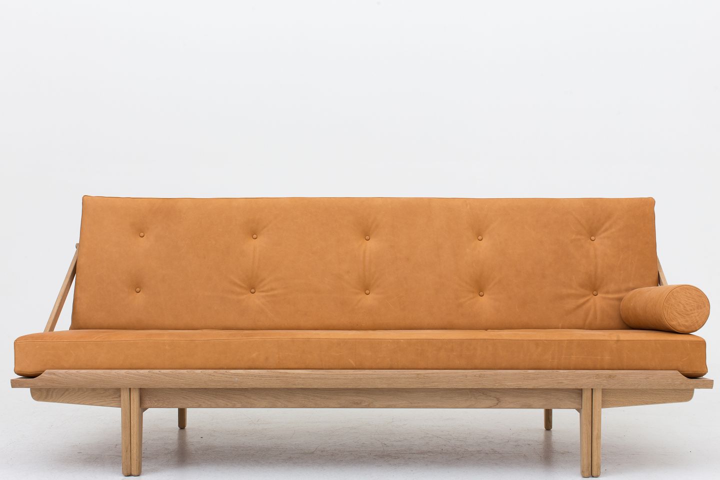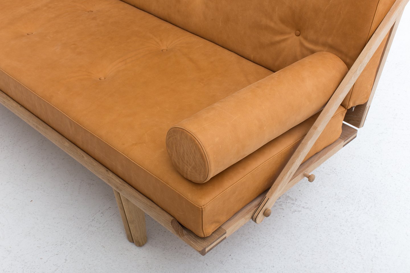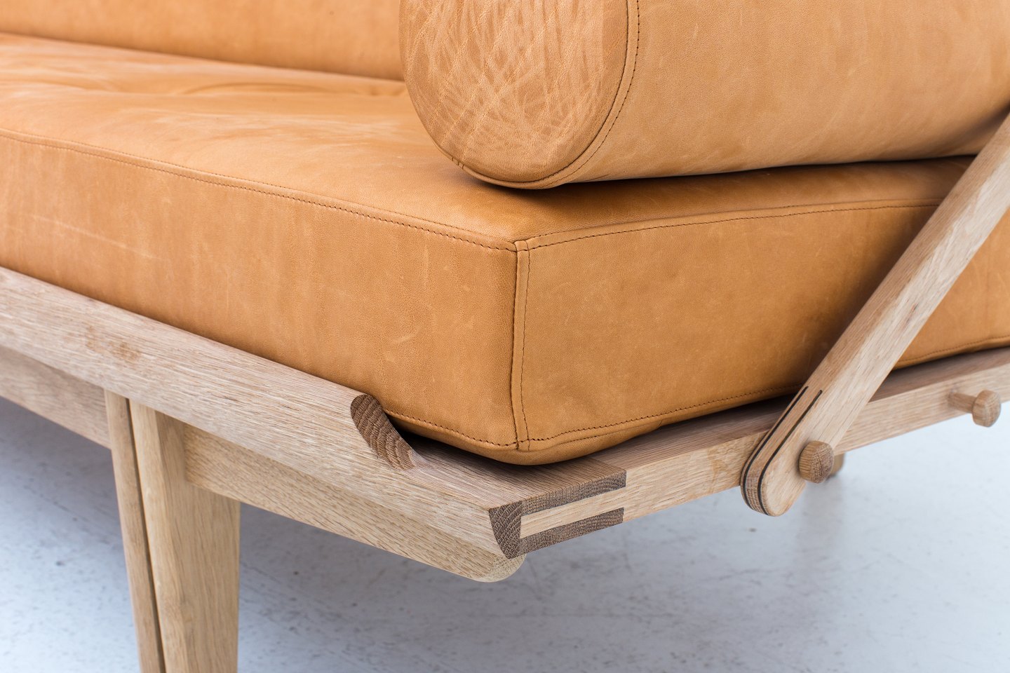 Daybed i eg, betrukket med Dunes Cognac-læder