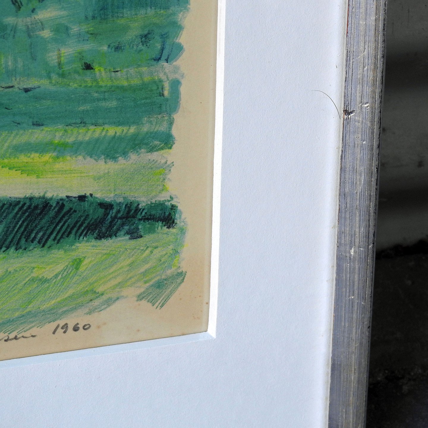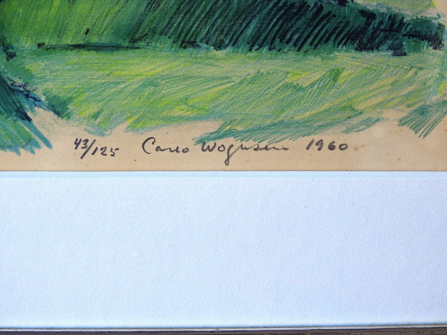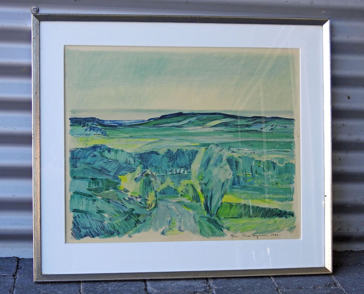 Litografi af Carlo Wognsen med motiv af bakket landskab