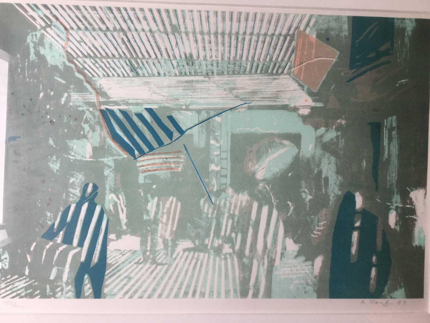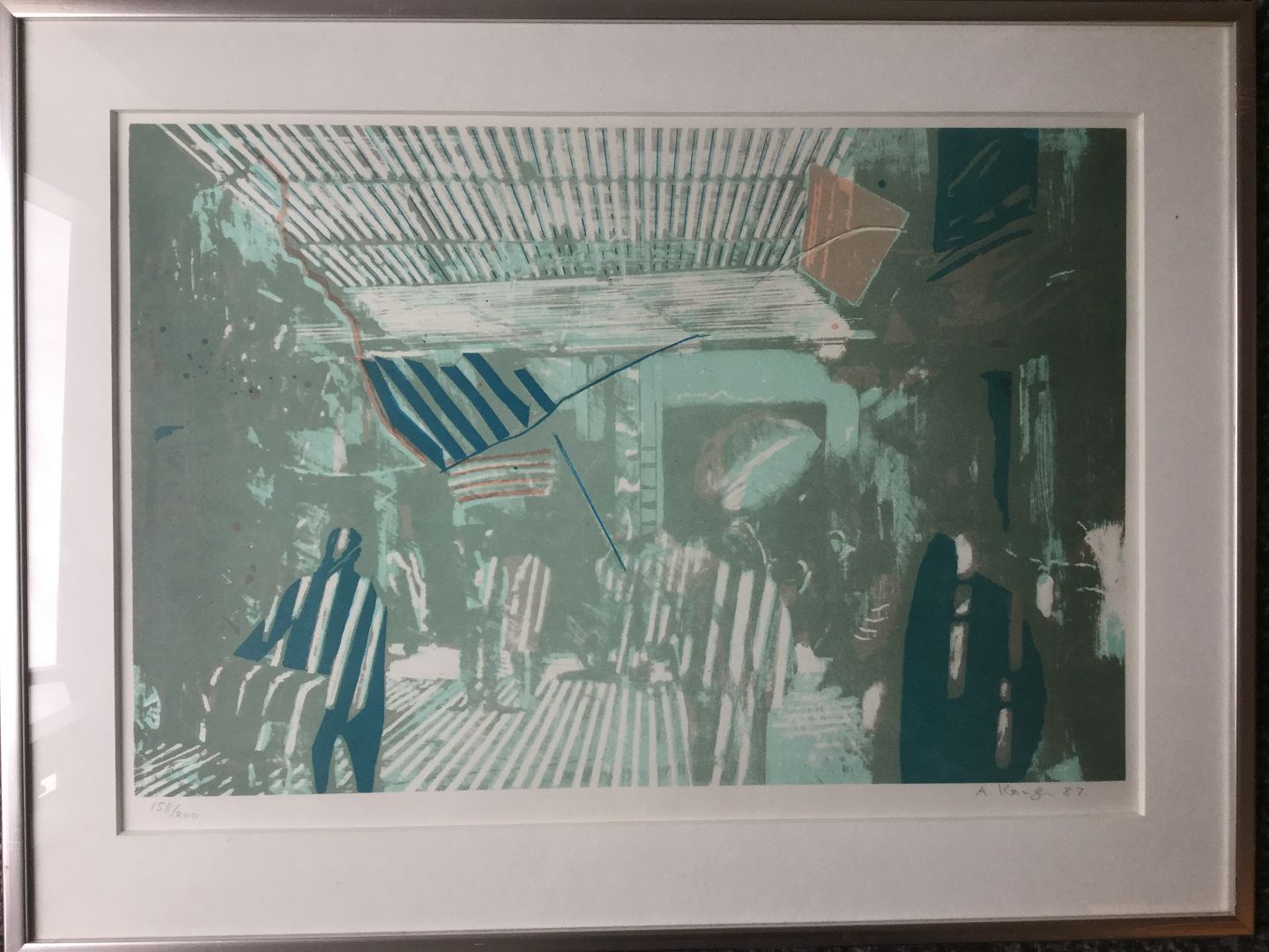 Farvelitografi af Anne Lise Kragh 1987 - Komposition.