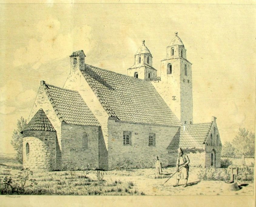 Kornerup, Jacob (1925 - 1913) Danmark: En kirke. Radering. Signeret: J. Kornerup 1854. 22 x 27 cm.