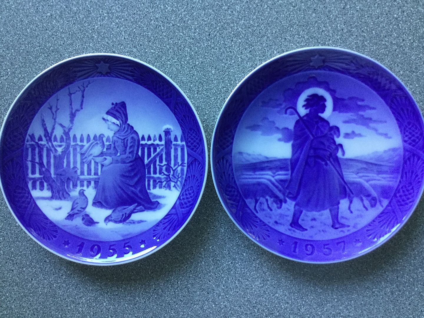 Juleplatter fra Den Kongelige Porcelænsfabrik 1955 og 1957.