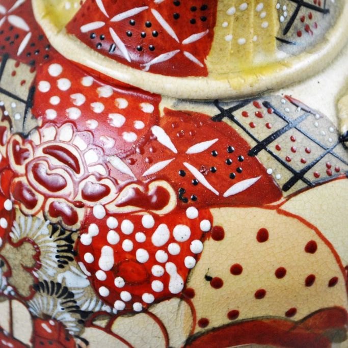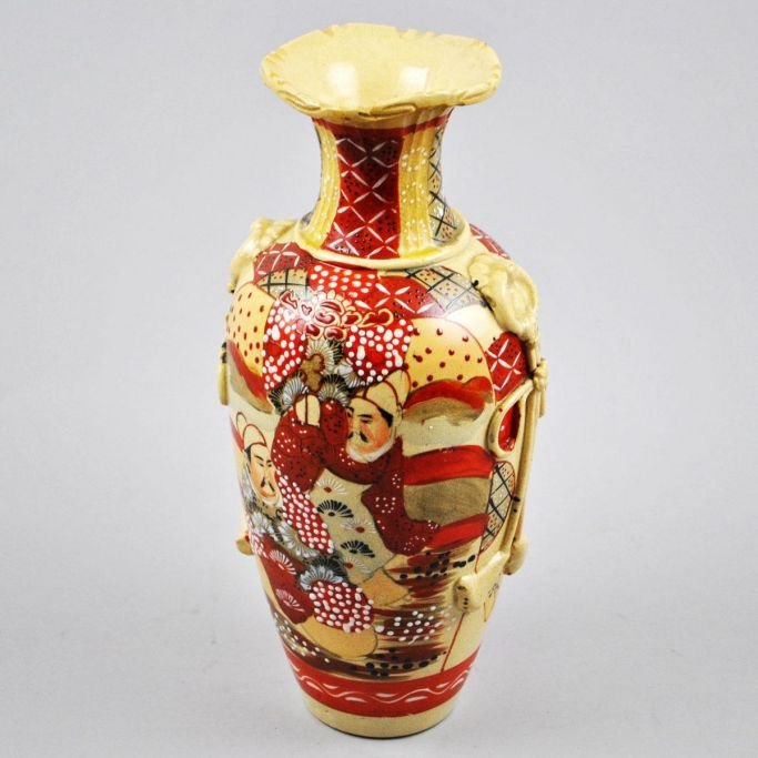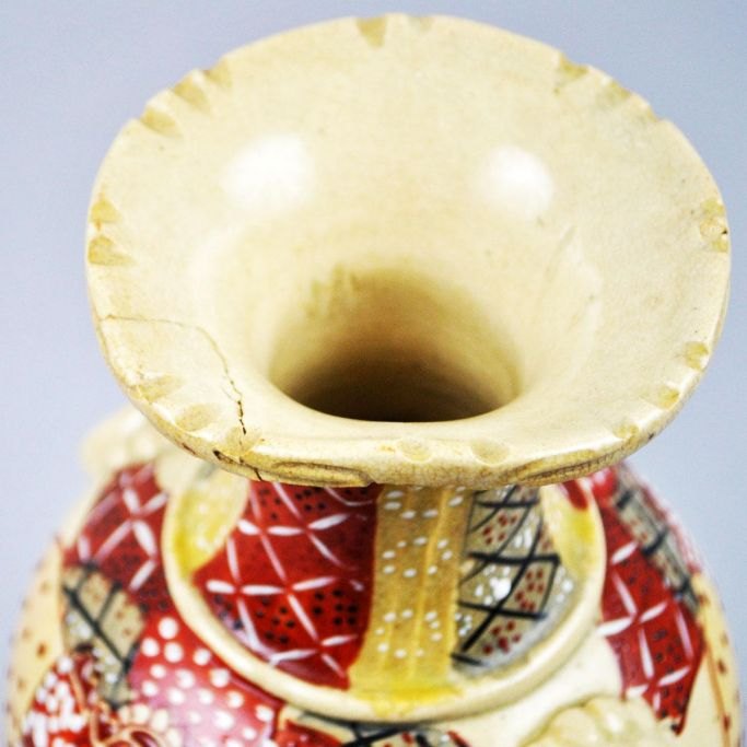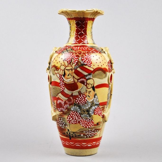 Satsuma vase. 19th Century. Japan. Polycrom decoration with warriors. Signed. Repairs on top. H: 31 cm.