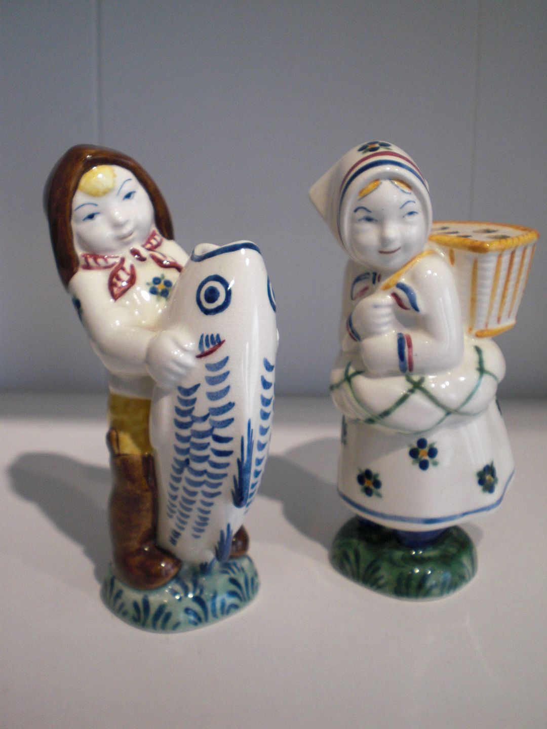 2 Børnehjælpsdagsfigurer: Skovserpige og -dreng fra henholdvis 1945 og 1946 tegnet af JUS - pseudonym for Herluf Ludvig Andreas Jensenius (1988-1966). Aluminia stempel Danmark - design nr. 2390. Højde 14 cm. Fin stand -