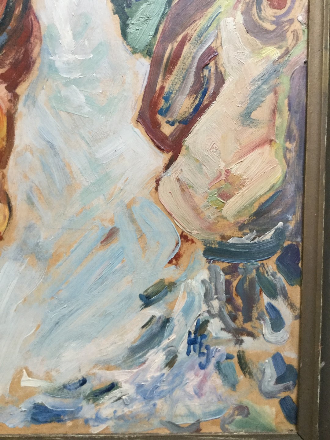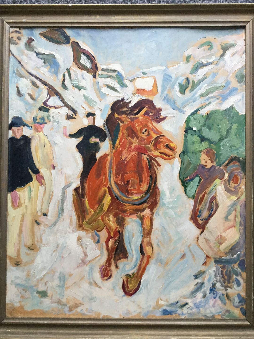 Maleri af Herman Emil Jensen - Hest og personer i landskab.