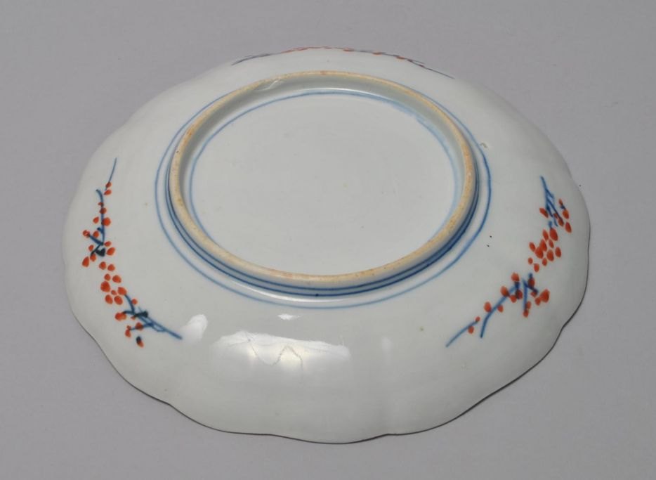 Japansk Imari porcelænstallerken dekoreret med planteornamentik. 19. årh. Diameter: 22 cm.