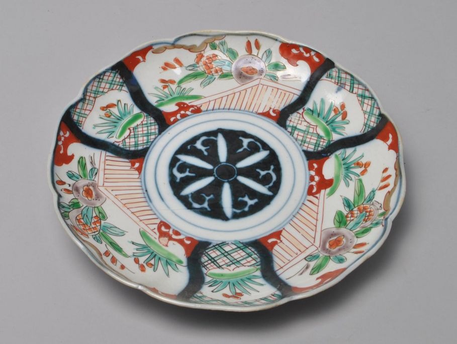 Japansk Imari porcelænstallerken, 19. årh. Polykrom dekoreret med planteornamentik. Diameter: 21,5 cm.