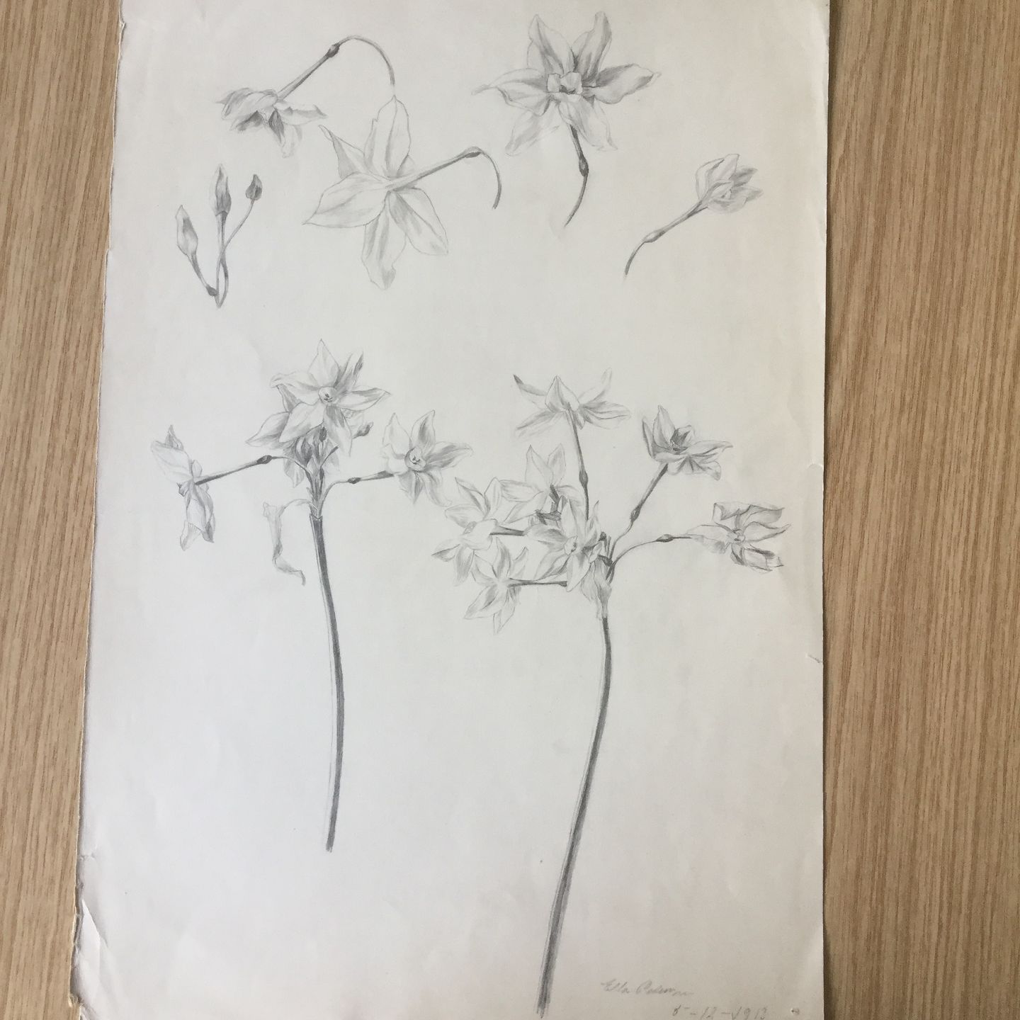 Tegning af Ella Pedersen - Skitse af blomster 1913.