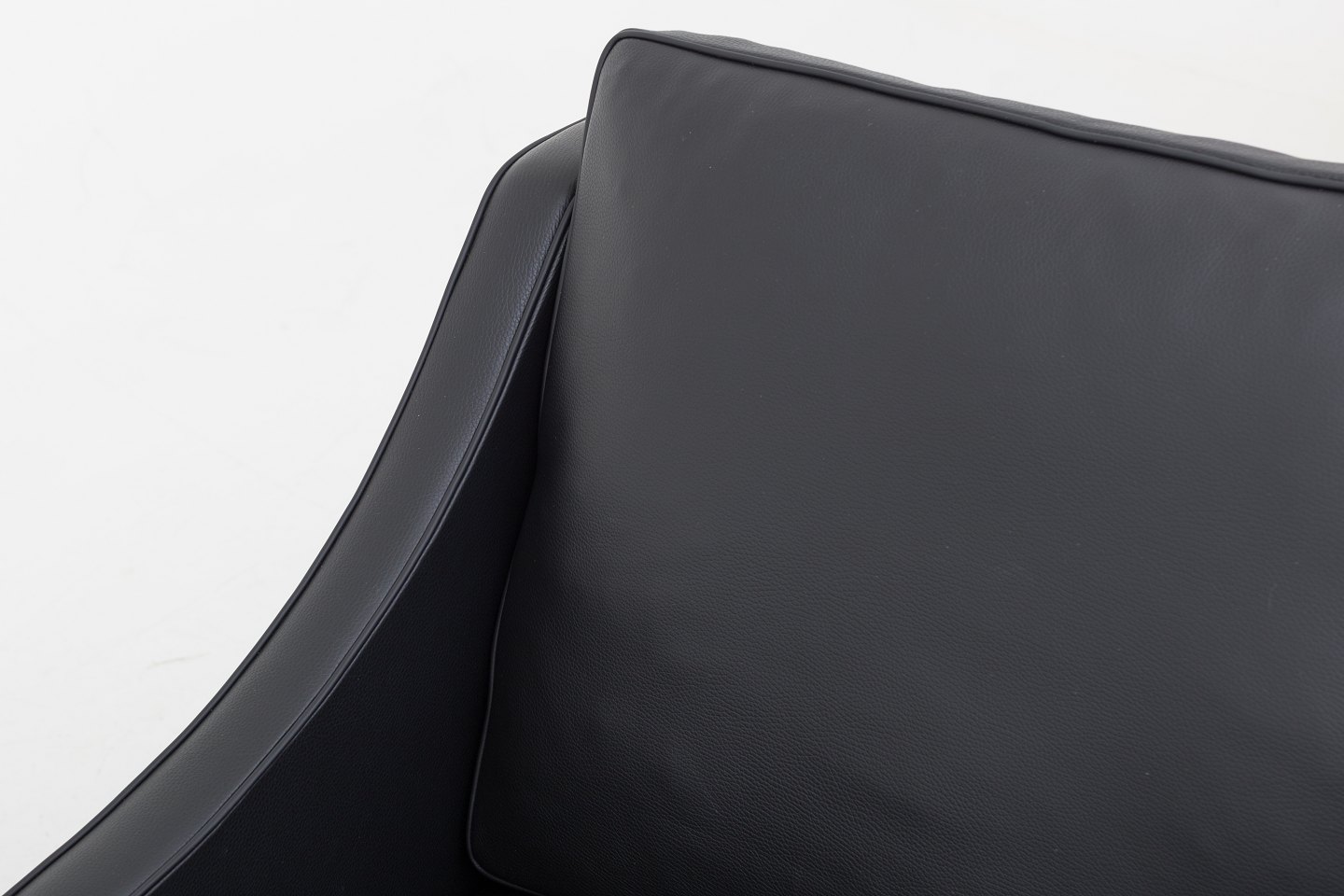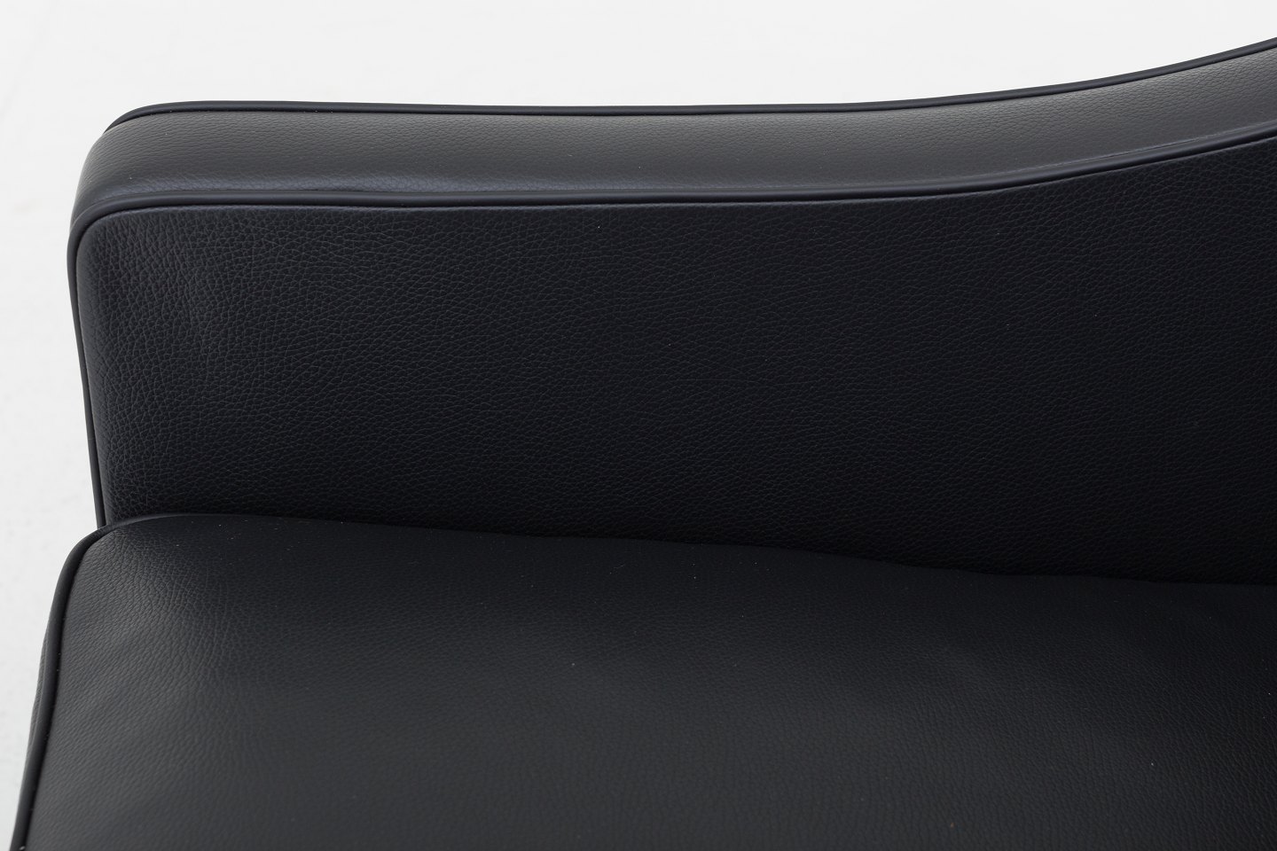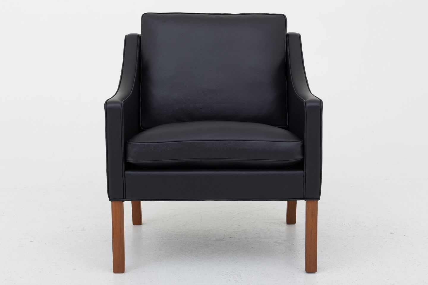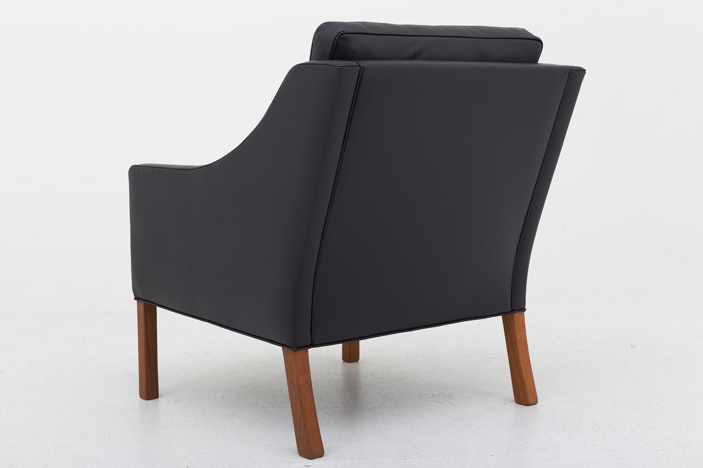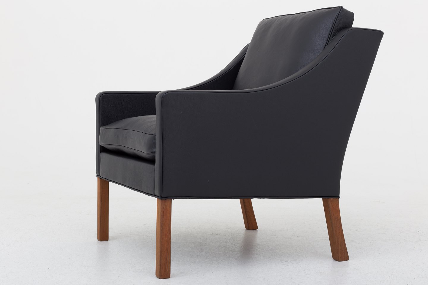 BM 2207 - Nybetrukket lænestol med sort læder og ben i teak