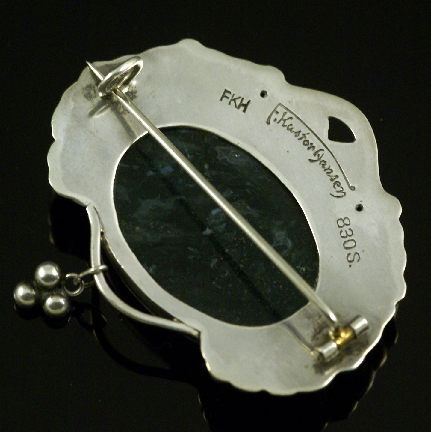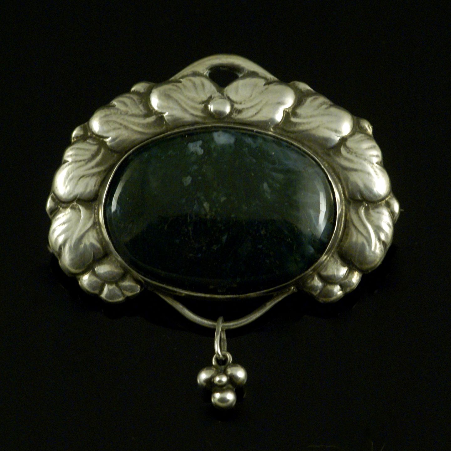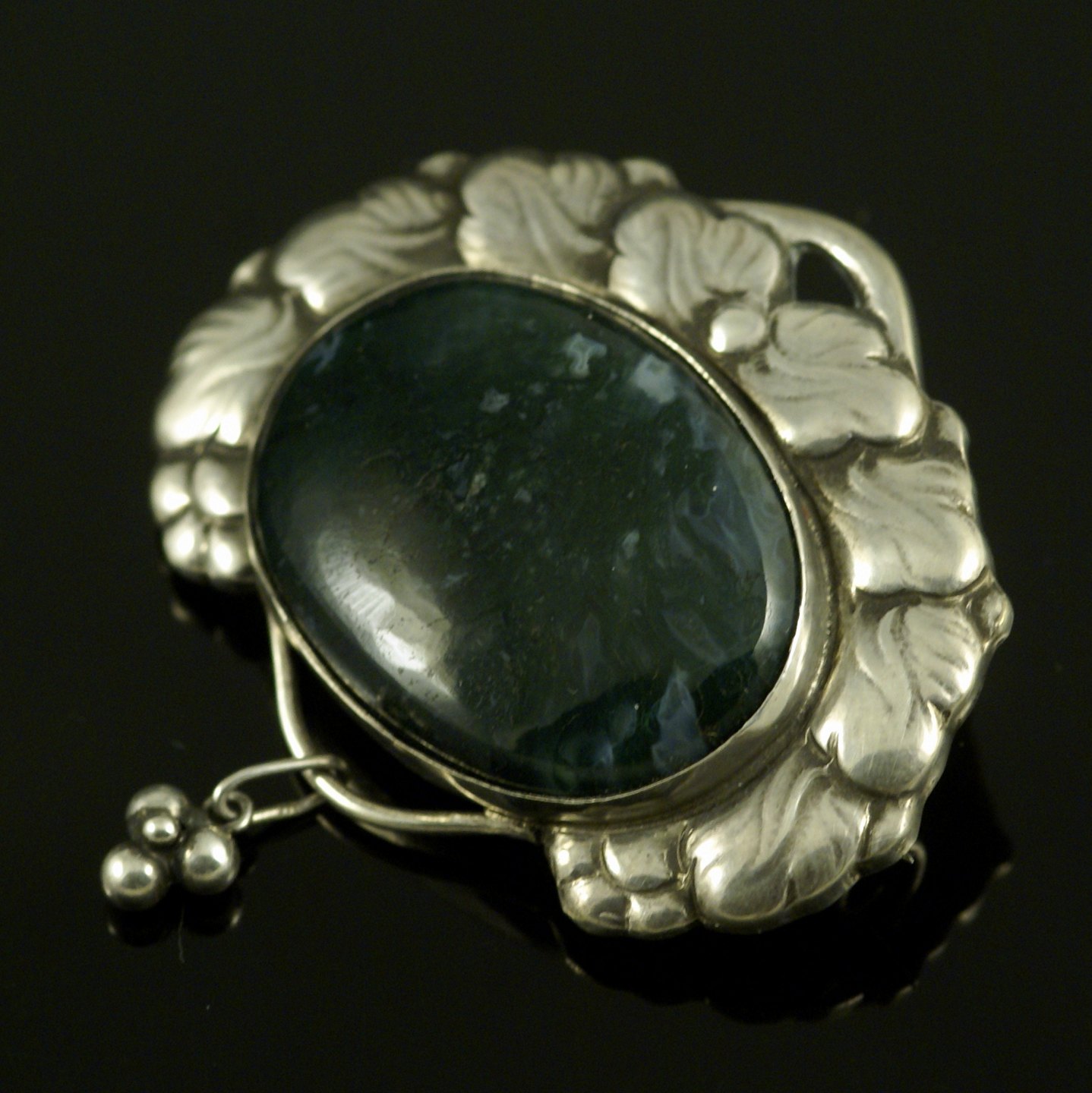Danish Art Nouveau Silver Brooch with Moss Agate - F. Kastor Hansen.