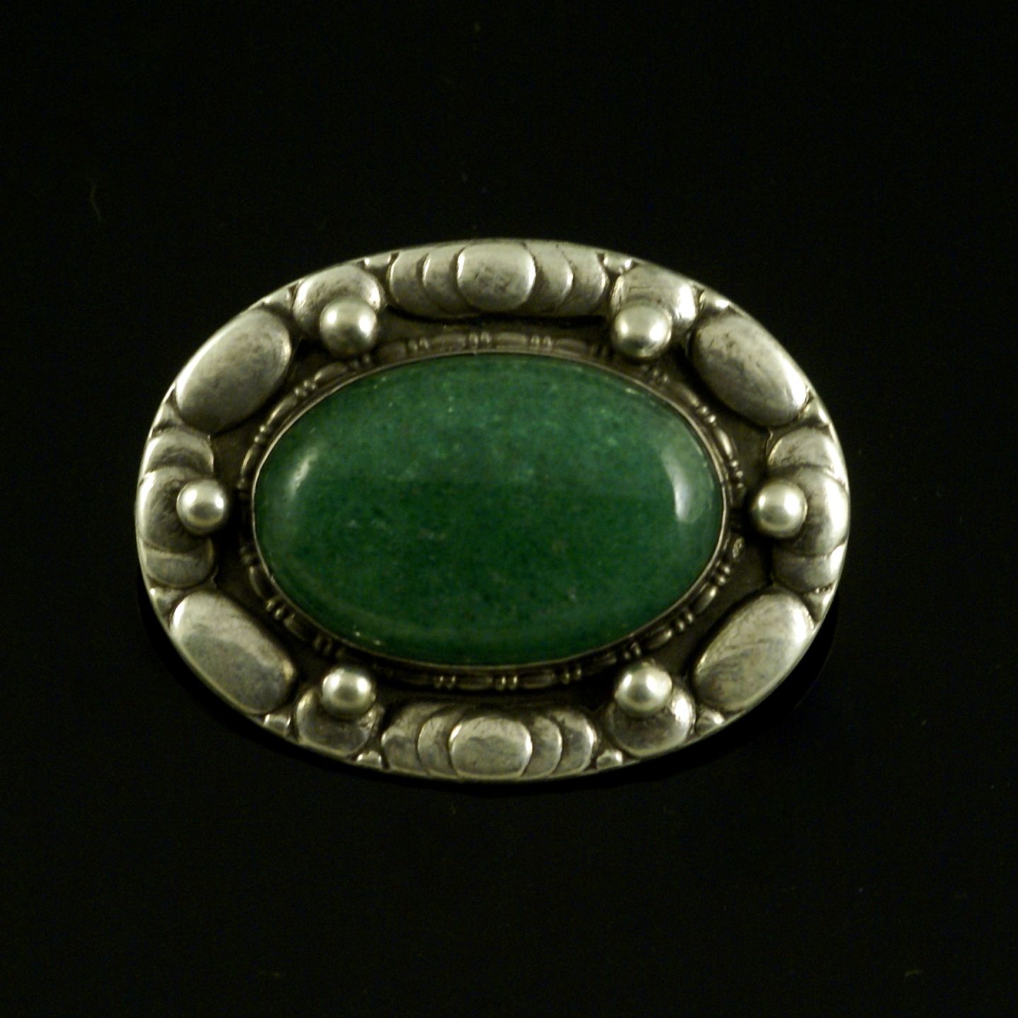 Erik Magnussen. Skønvirke Broche i Sølv med Aventurin kvarts.
