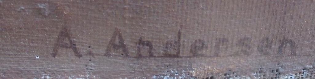 Andersen, A (19./20. årh.) Danmark: Interiør. Olie på lærred. Signeret: A. Andersen. 45 x 41cm.