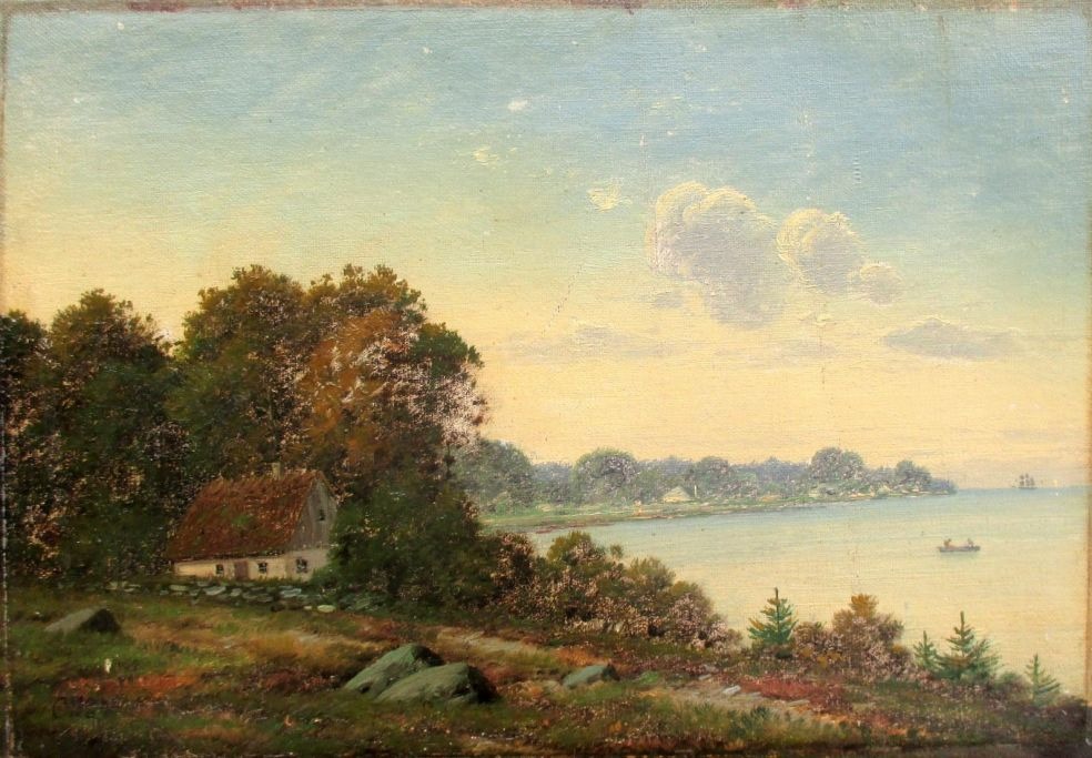 Schmidt, Carl Heinrich Frantz (1853 - 1923) Danmark: Fra Nordsjællands Kyst. Olie på lærred. Signeret: Monogram C.S. 87. 24 x 34 cm.
