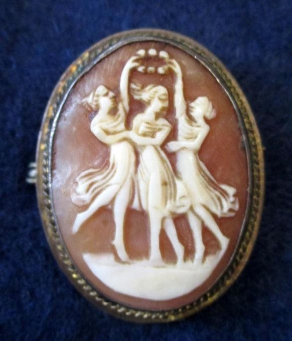 Antik brosche/vedhæng i sølv med camè med de tre gratier, Italien, 19. årh.