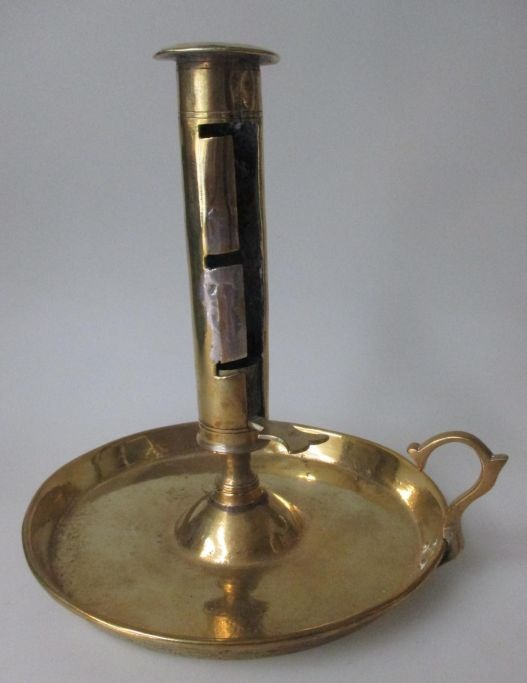 Antik dansk kammerstage i messing, 19. årh. Med skål og håndtag. Stemplet.: PP. Højde.: 16 cm. Dia. skål: 15,5 cm.